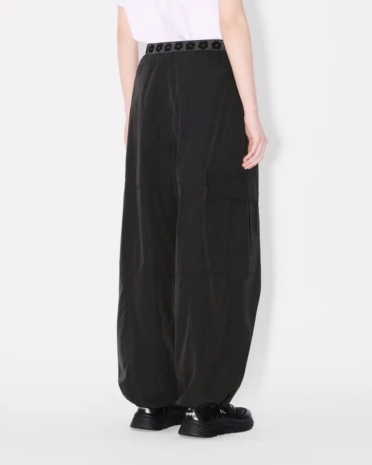 テクニカル コットンの 'Boke Flower 20' カーゴ パンツポリエステル コットンのテクニカル素材「Boke 20」の伸縮性のあるウエスト裾にドローストリング、両脇にフラップ付きパッチポケット×2サイドに「Boke 20」のバッジゴムバンドは「Boke 20」ジャカード