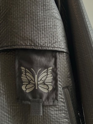 立体感のあるポリエステル生地を使用し、ベーシックなクルーザージャケットをファッショナブルにアレンジ。リフレクターにプリントされた「NEEDLES」のブランドロゴが、印象的なアクセントになっています。