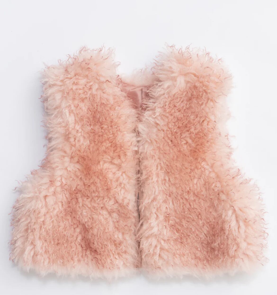・大胆な毛足の長いシャギーファーが目を引く、シーズンムードたっぷりのアイキャッチベスト。