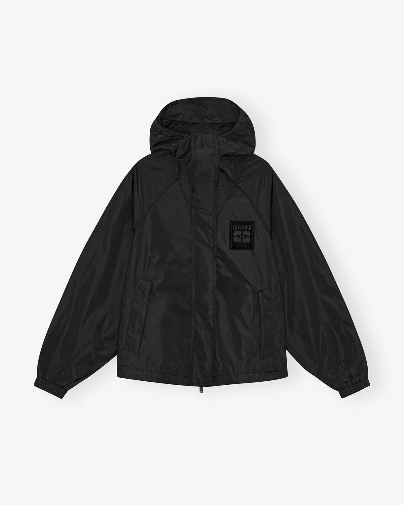 フードとフロントジッパーが特徴です。胸にはGANNIのロゴパッチが付いています。