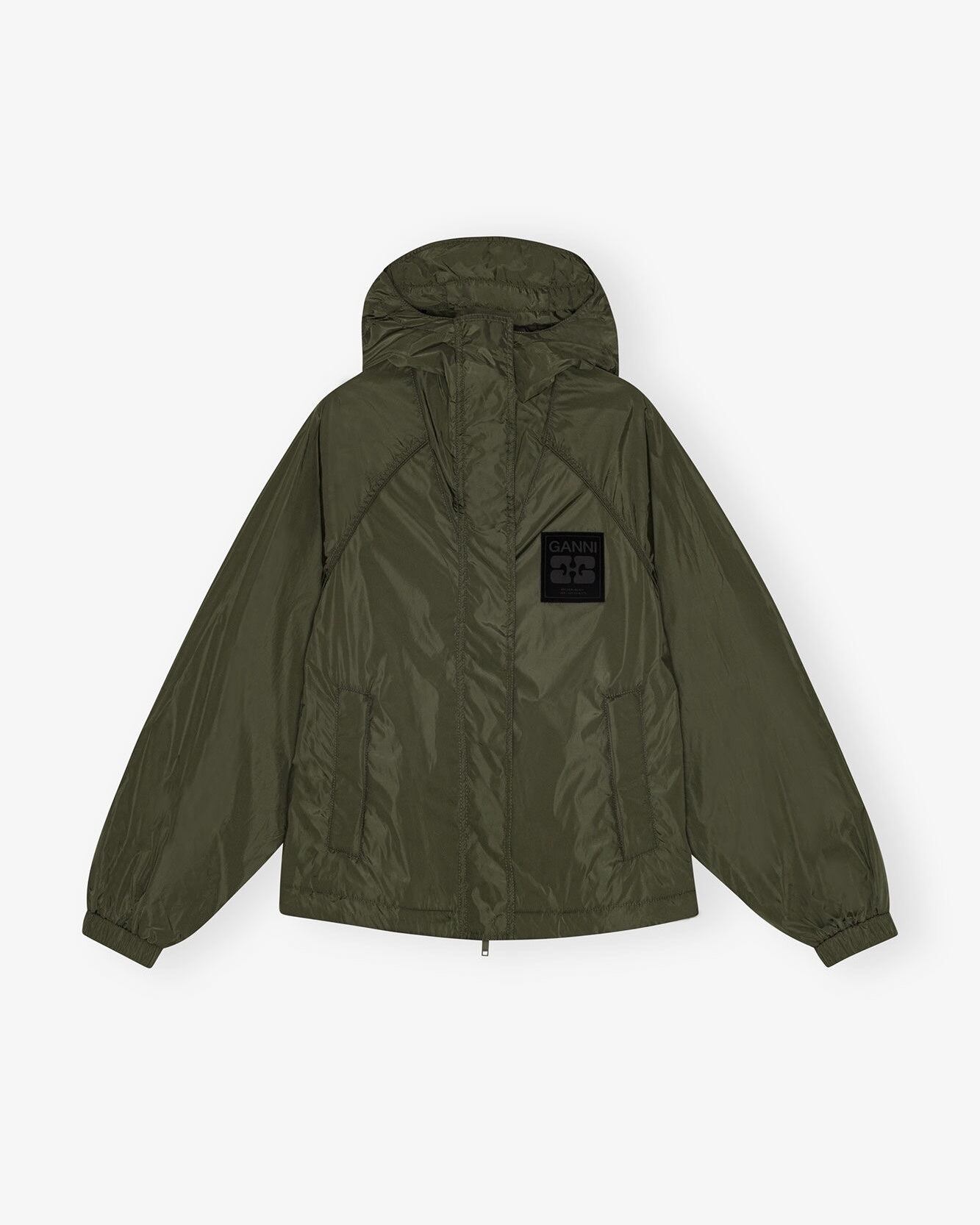 フードとフロントジッパーが特徴です。胸にはGANNIのロゴパッチが付いています。