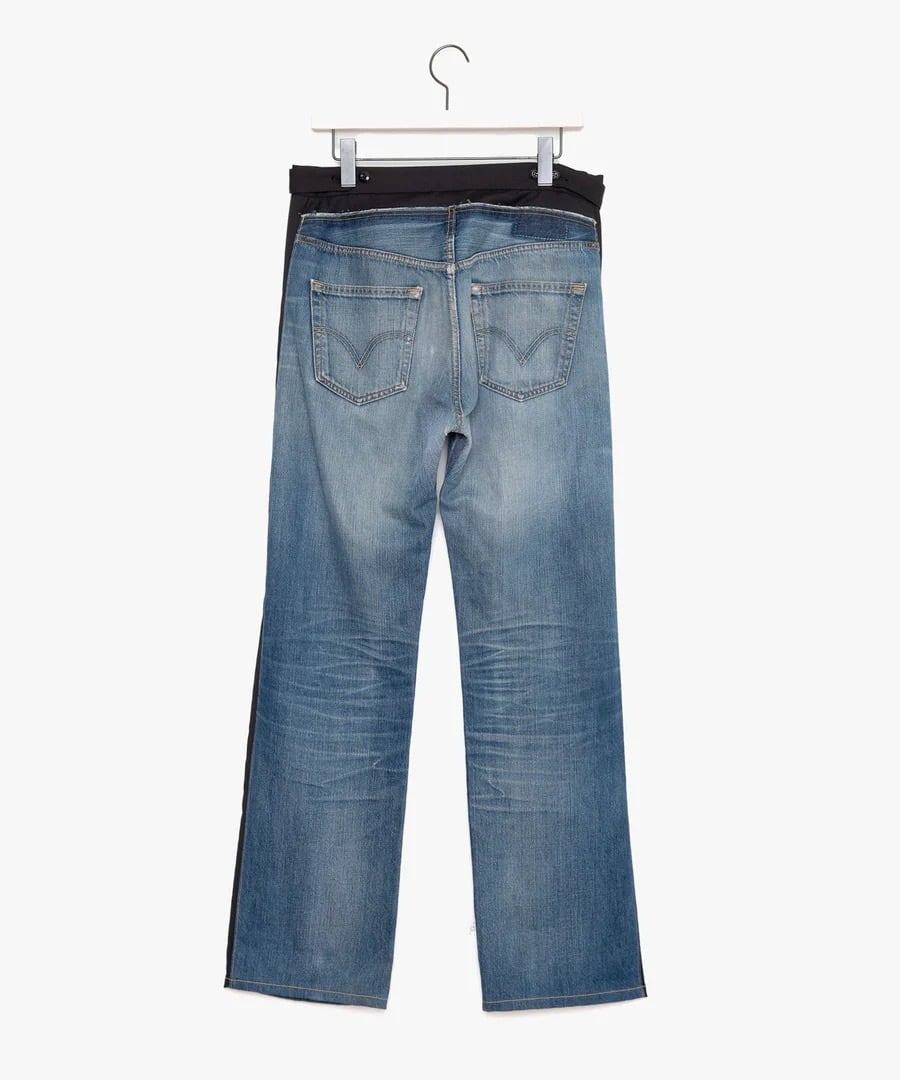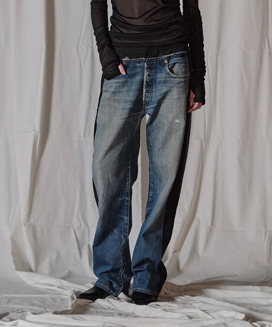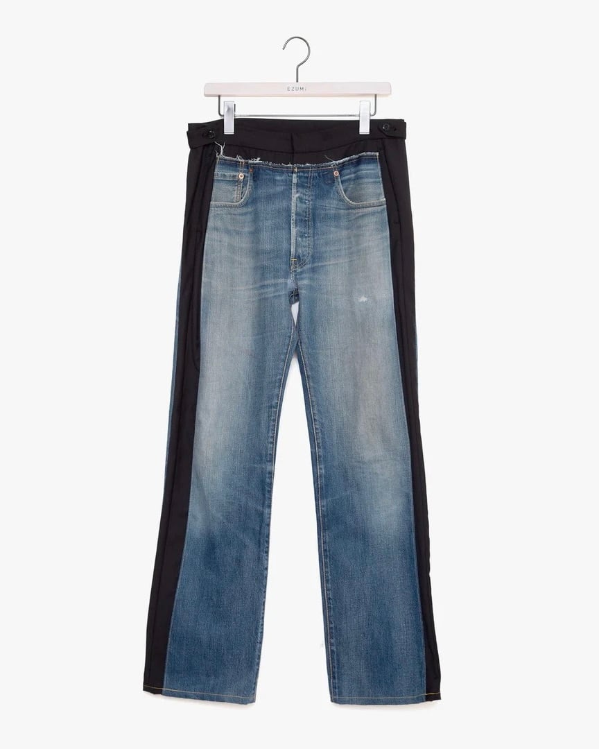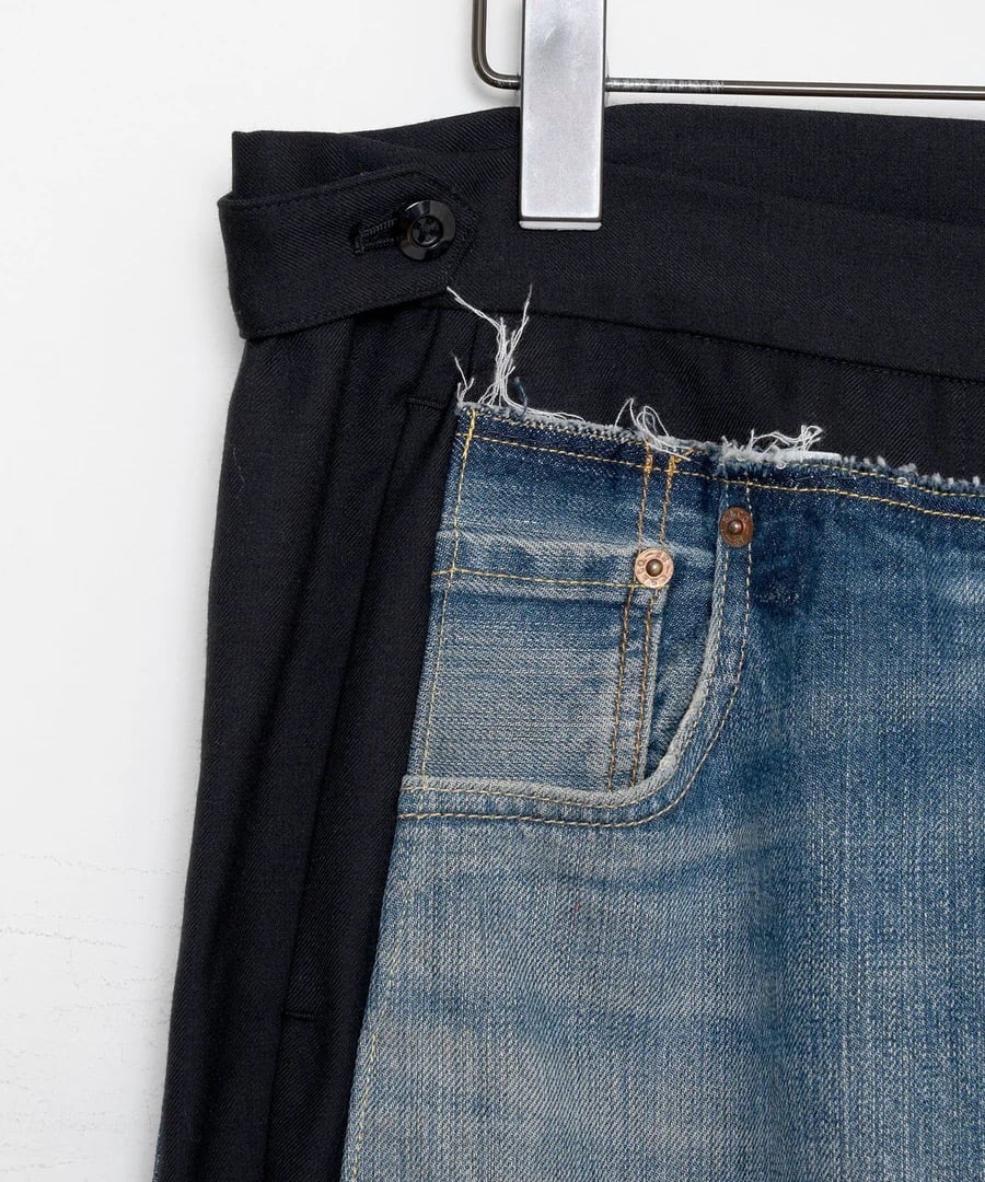 リーバイス501のデニムパンツを解体し異素材とドッキングしたテーラードパンツです。