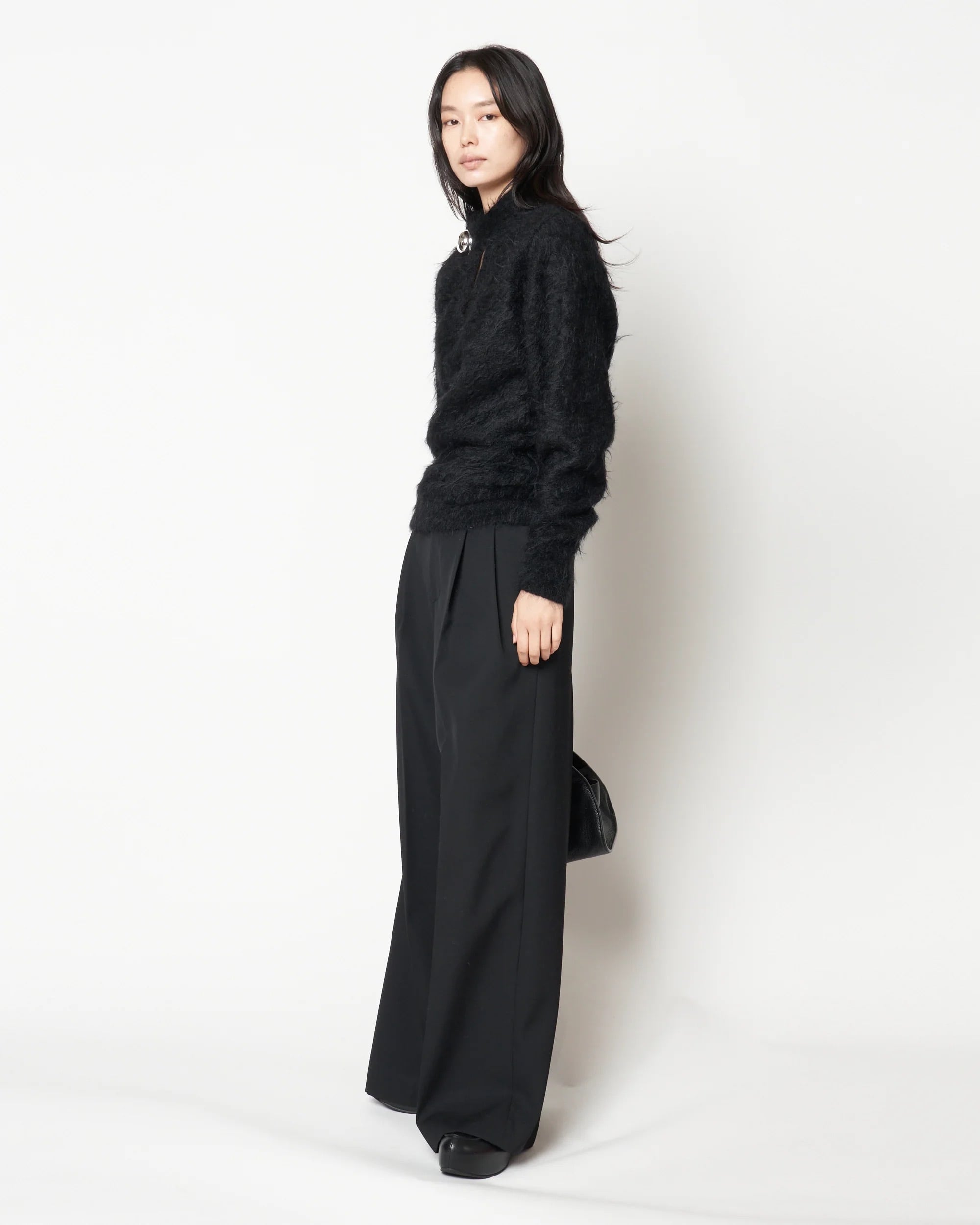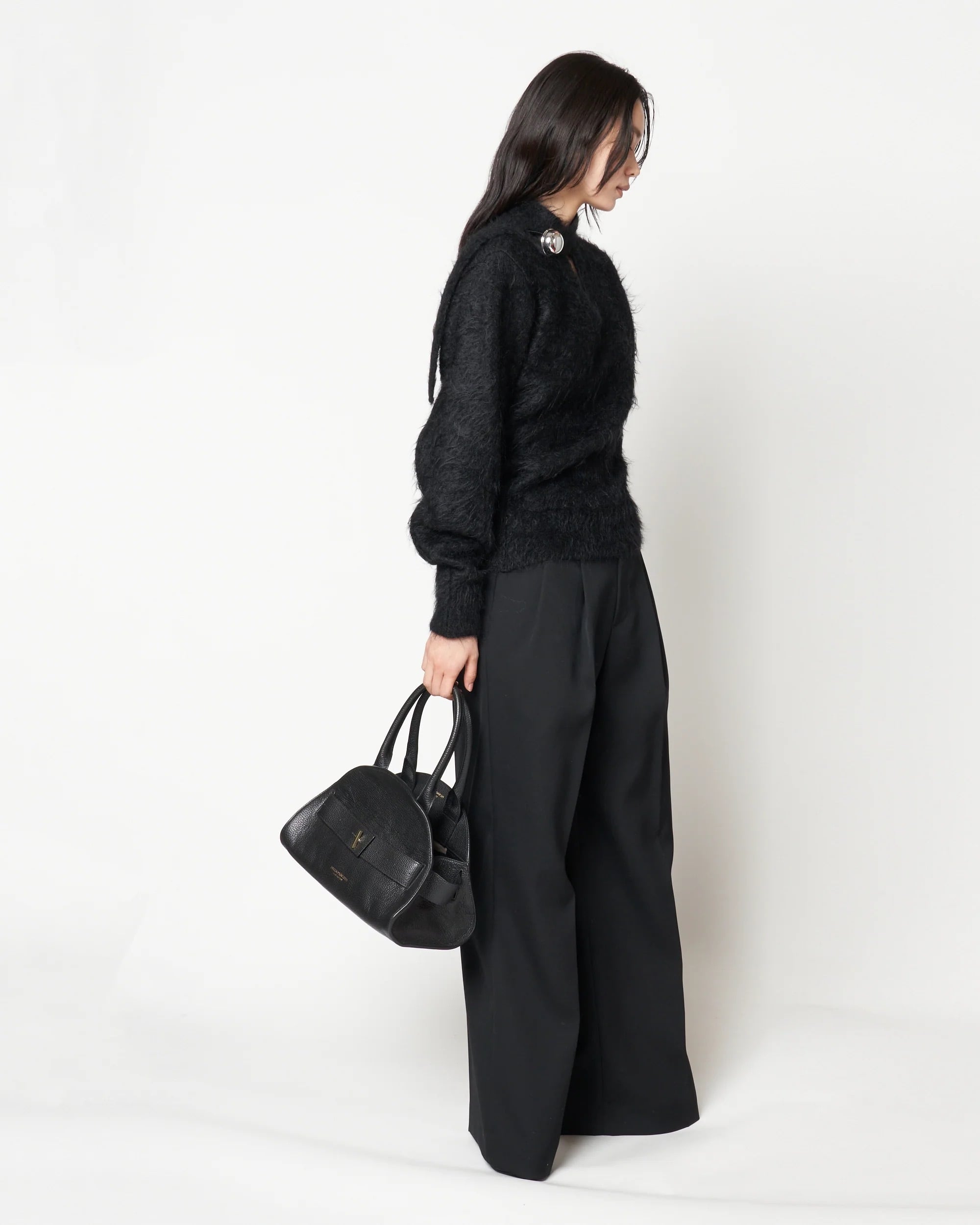 上質なモヘアの柔らかな毛足と、構築的なフォルムが織りなす端正な佇まいのニットトップ。