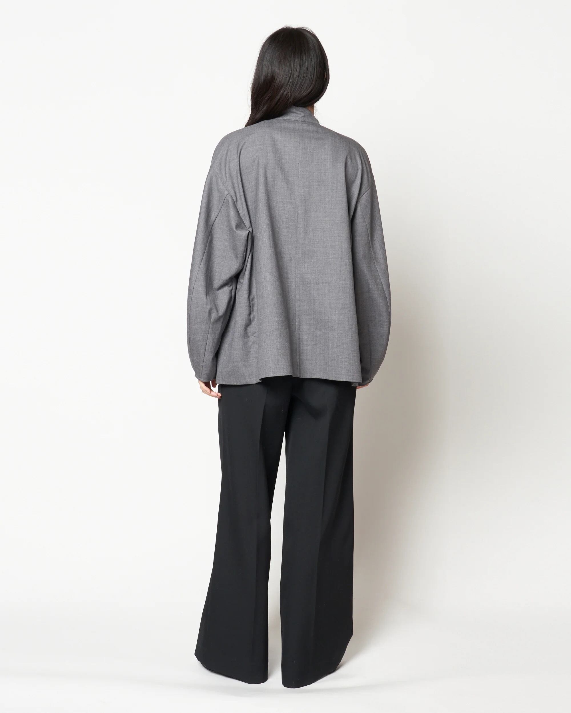 同素材のパンツとのセットアップはもちろん、カジュアルな素材とのミックススタイルにも馴染む汎用性の高い一着。シーズンを越えて永く愛用いただけるHARUNOBUMURATAのブランドを象徴する新たなエッセンシャルアイテムです。
