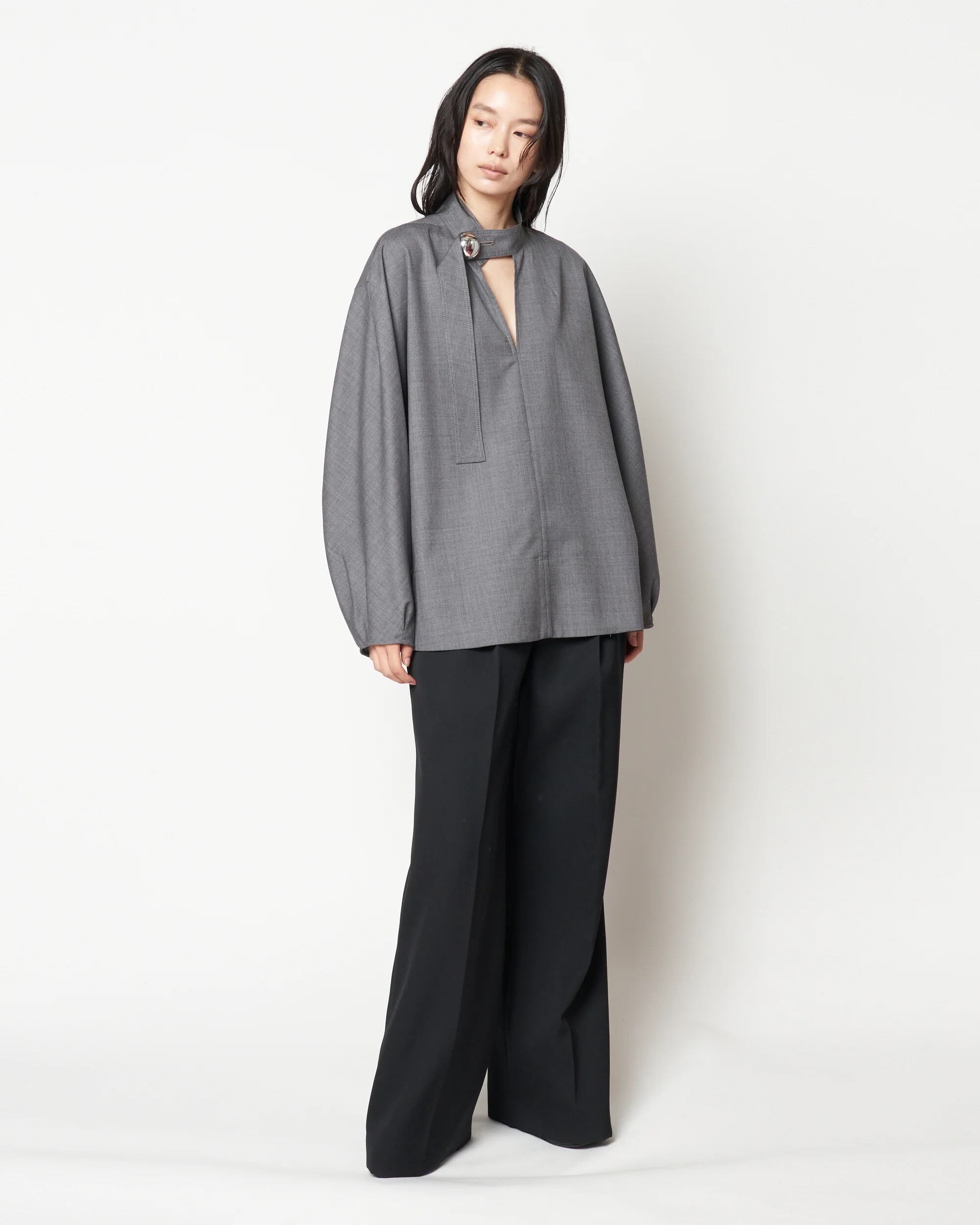 HARUNOBUMURATA 秋冬コレクションより、アイコニックなボタンディテールをあしらったプルオーバートップにウール素材の新作が登場。