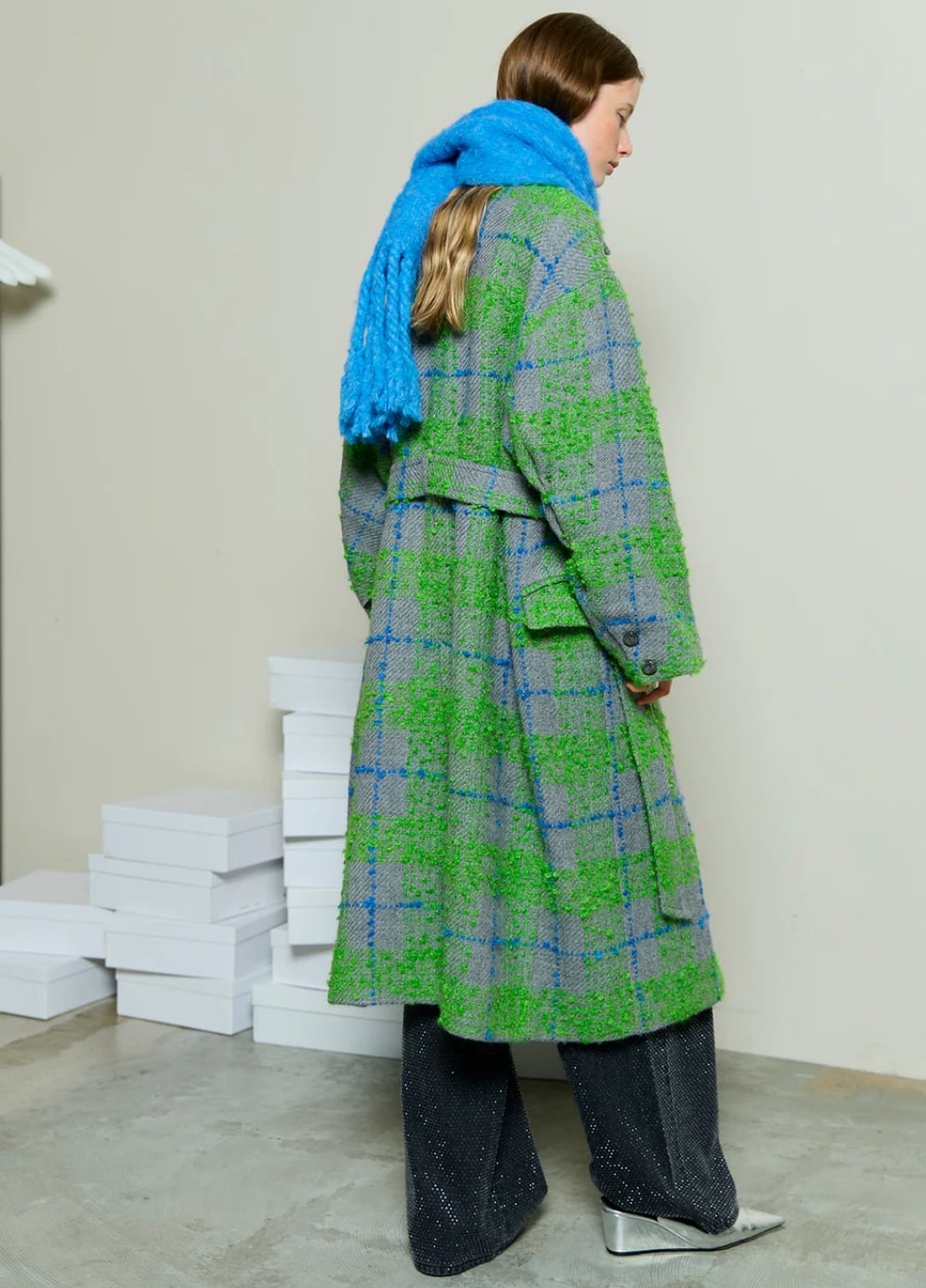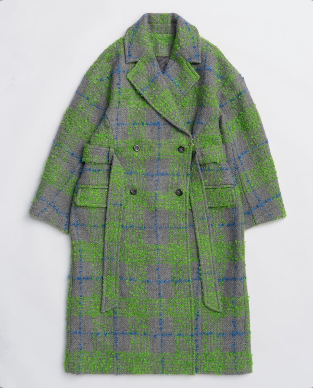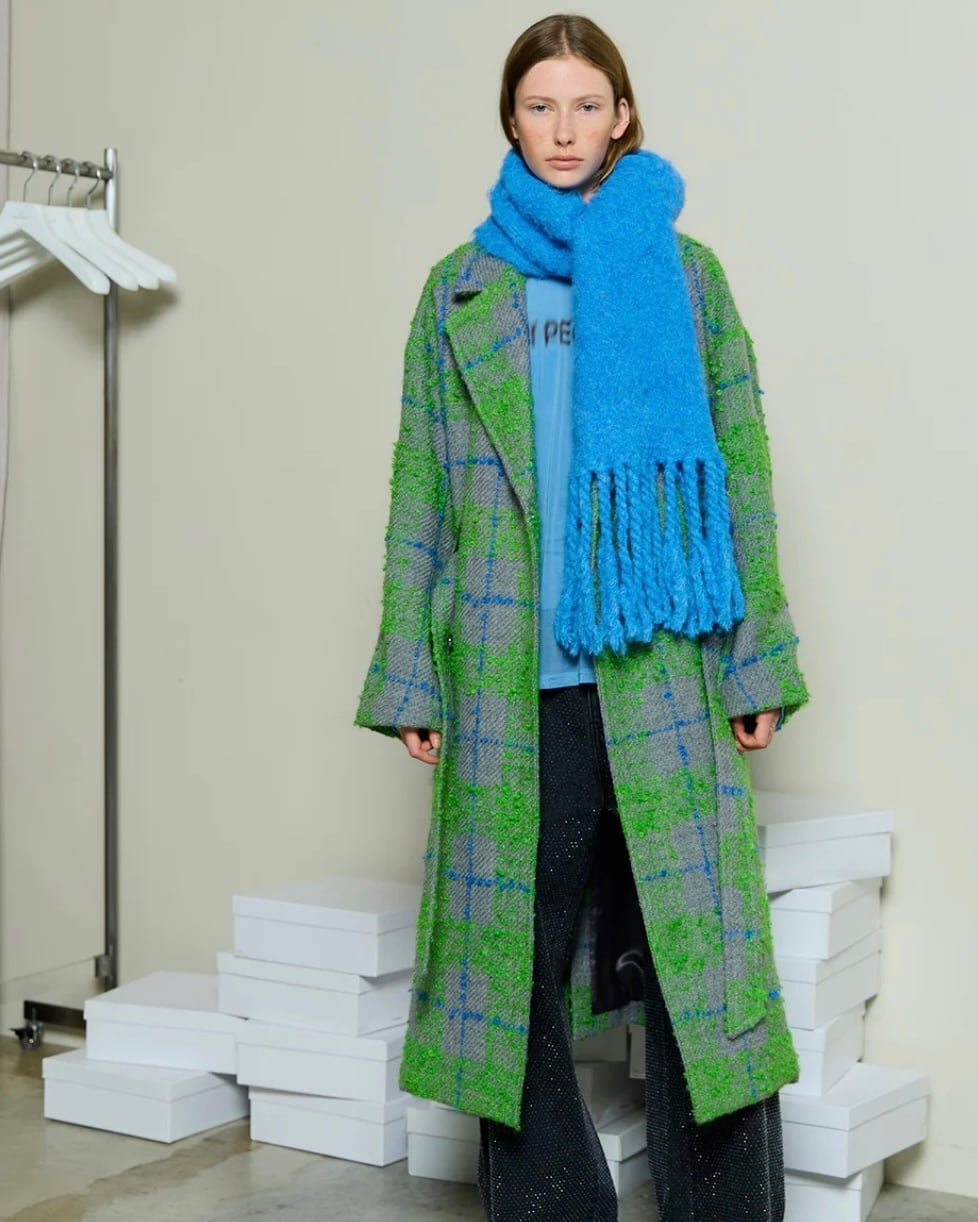 グリーンは尾州産のオリジナルビッグチェックを使用し、鮮やかな配色がスタイリングを一気に華やかに演出。