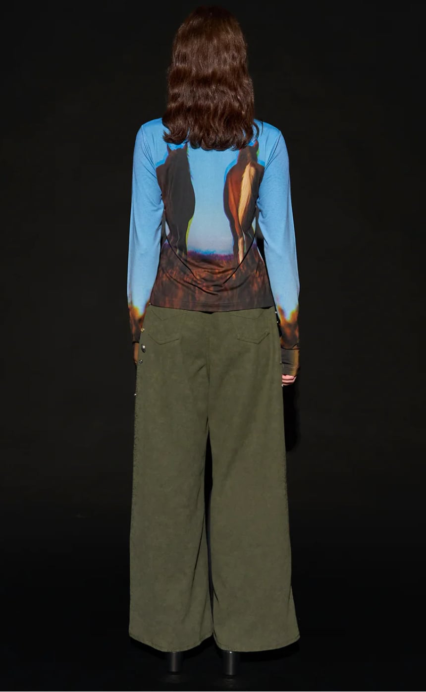 大胆なアートプリントにモードな雰囲気をプラスし、着るだけでスタイリングの主役になる一枚です。