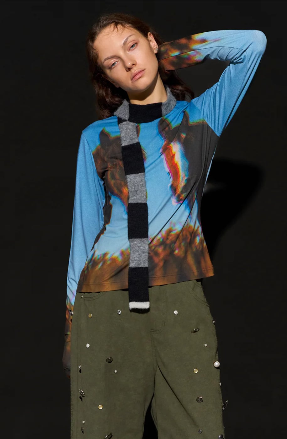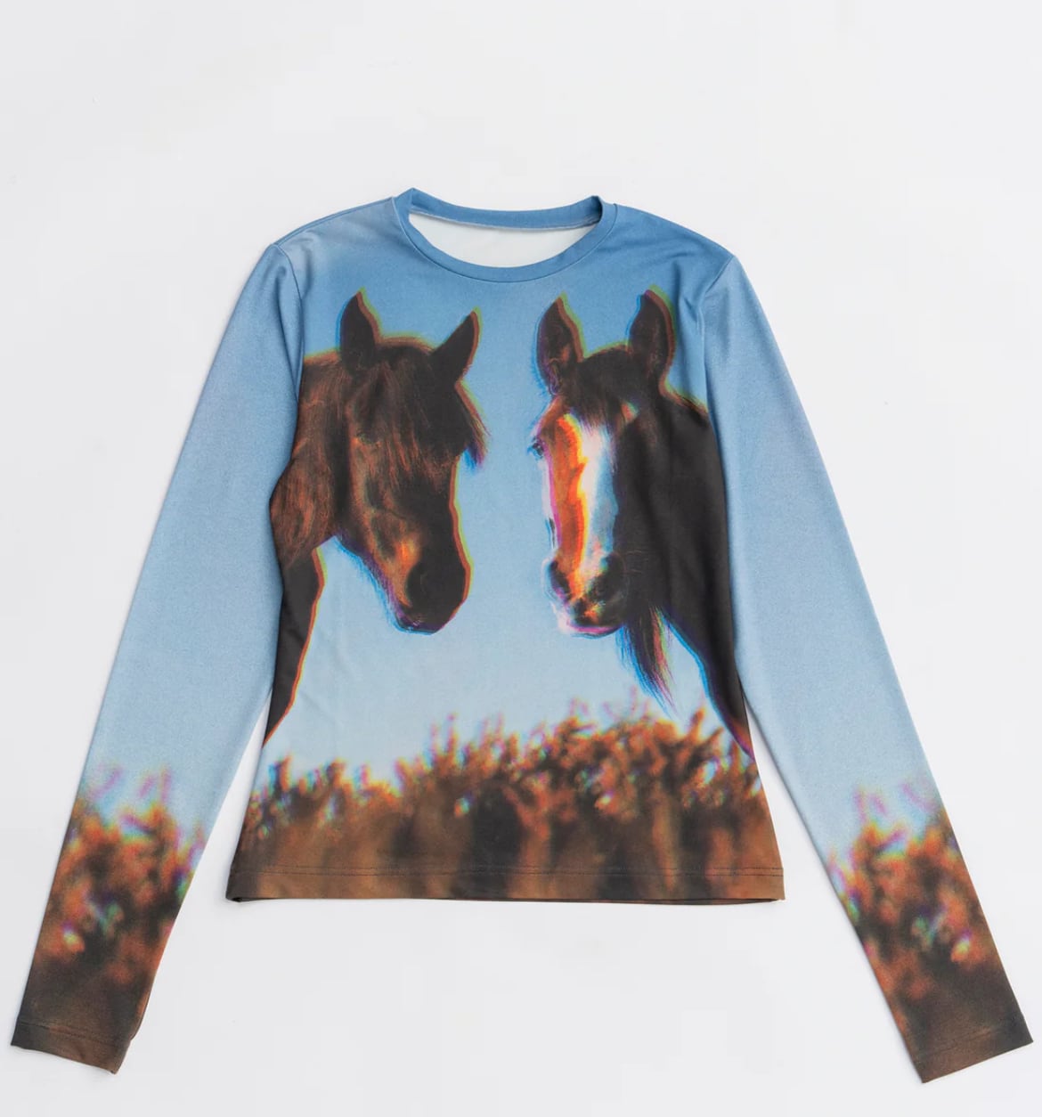 2026年の午年を記念してデザインされた、迫力のある馬柄プリントが印象的なロングスリーブトップス。