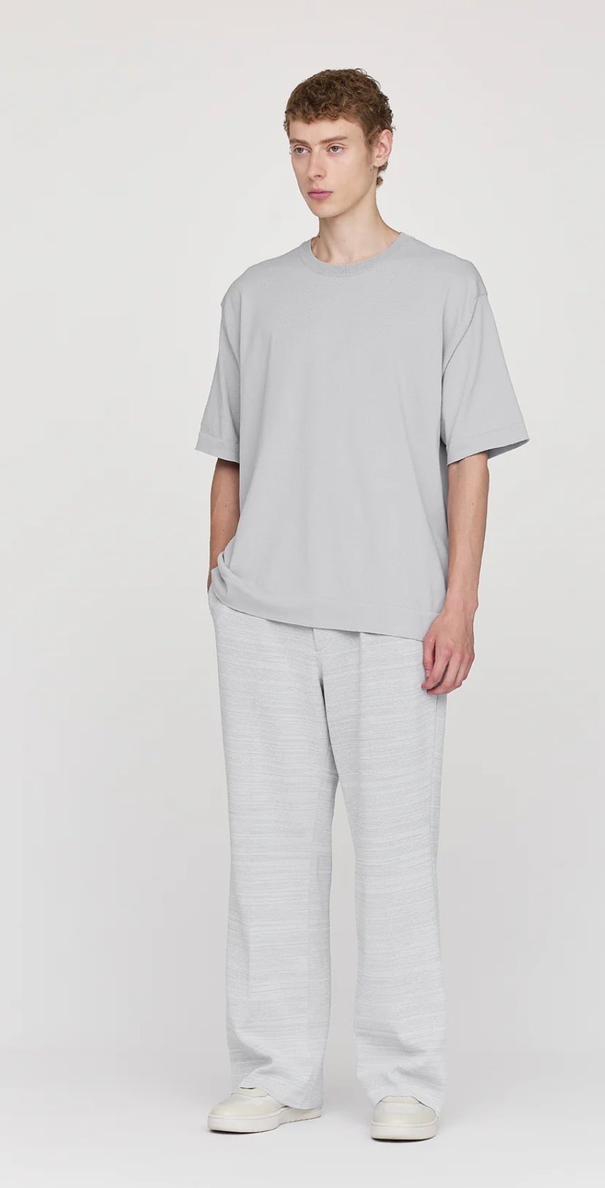ゆったりとした縦長のシルエットのハイゲージTシャツ。柔らかなコットンポリエステル素材の肌触りが気持ちよく、暑い季節も快適に過ごせます。袖口と裾は2枚の編み地を重ねて編まれているので張り感のある仕上がりです。パンツポケットに手が入れやすいよう、両サイドにスリットが入っています。ストレッチ性に優れ、縫代がなく、快適にご着用頂けます。