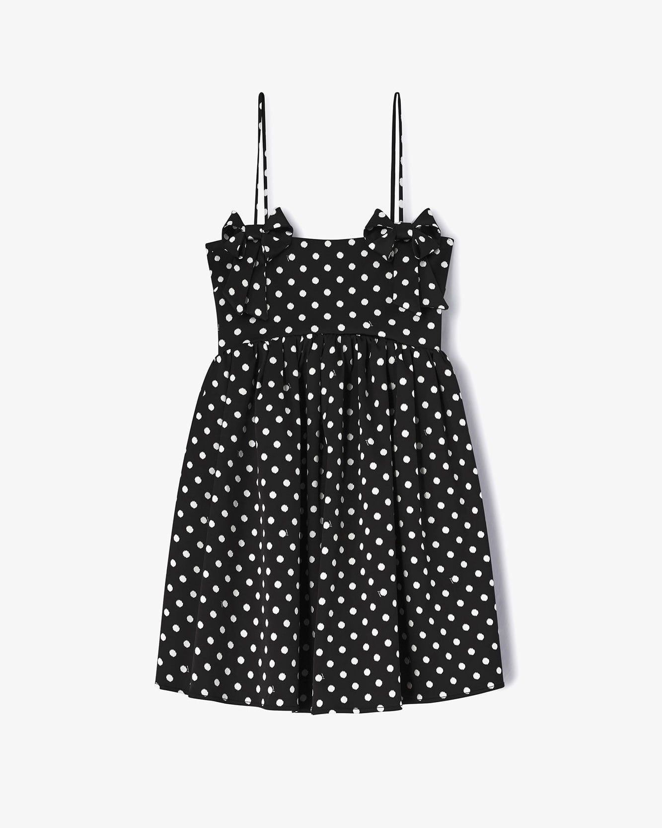 このドレスはスパゲッティストラップ、ジッパークロージャー、エラスティックバックパネル、フロントのボウディテールが特徴です。