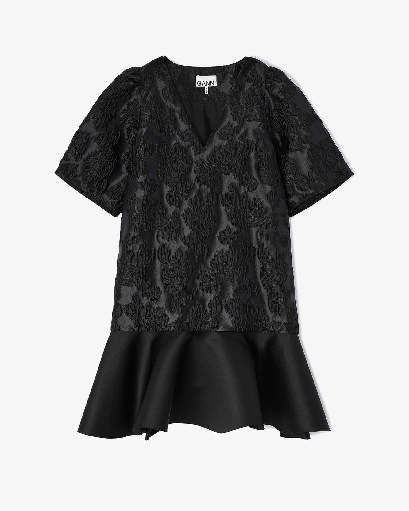 【Satin Cloque Mini V-neck Dress】