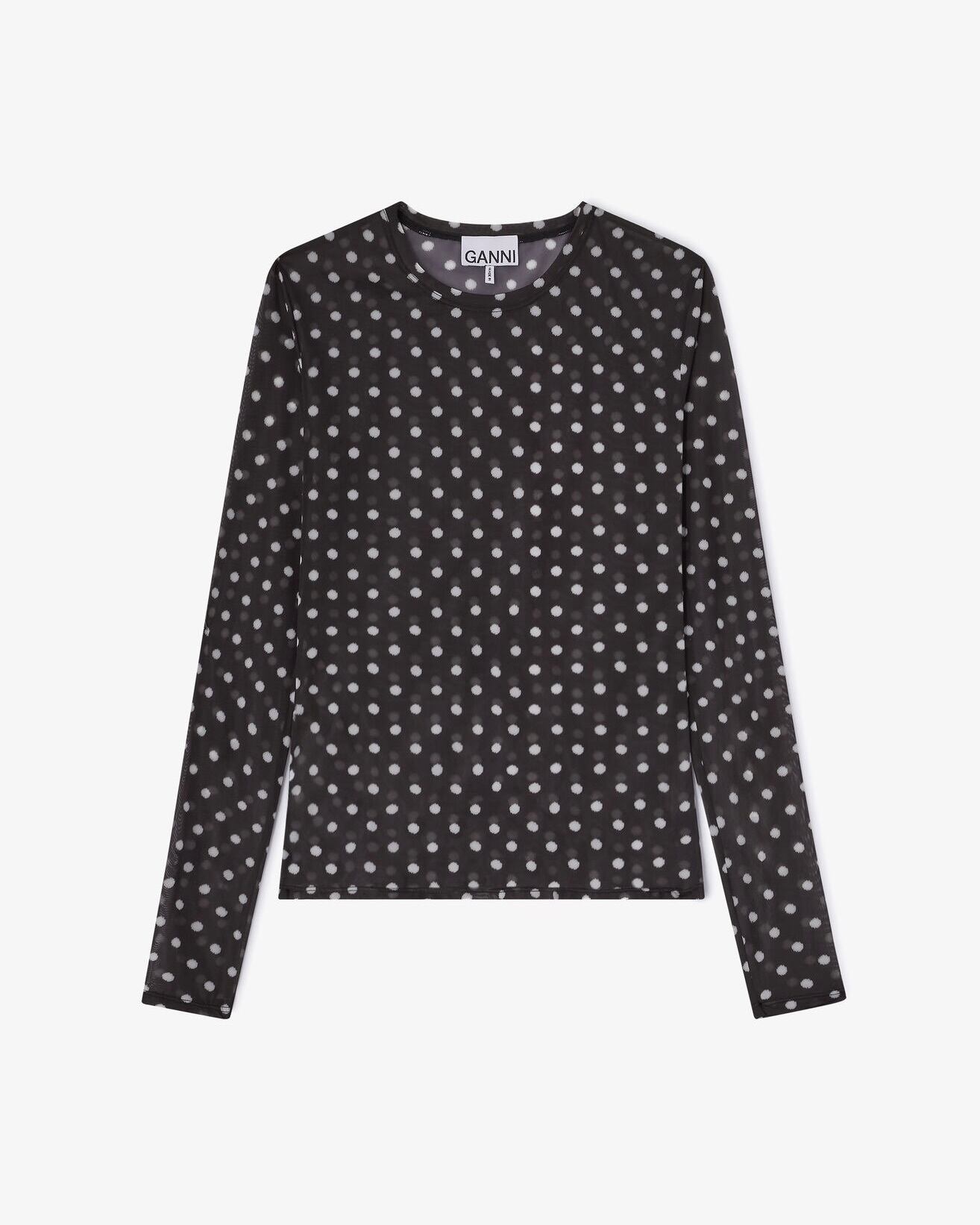 このトップはラウンドネックラインとロングスリーブが特徴です。