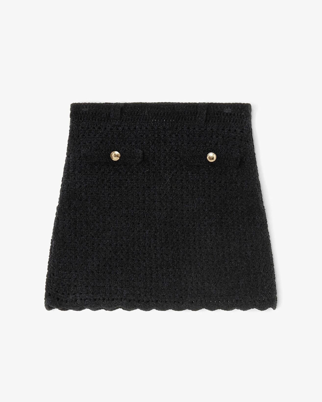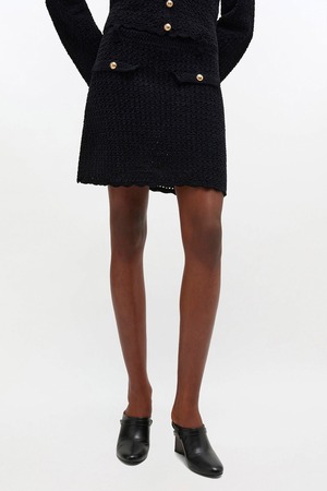 ファスナー開閉、ベルトループ、装飾ポケットを備えたスカート。