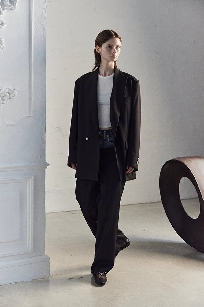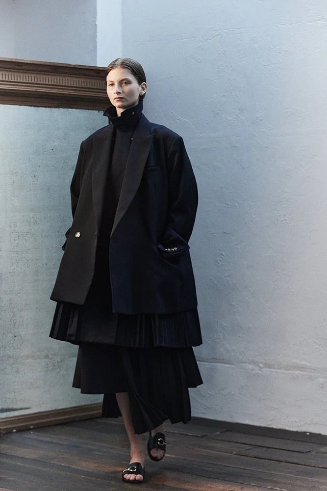 オーバーサイズに設計されたボックスシルエットは、空間の中に確かな輪郭をもたらし、まるでRichard Serraの彫刻のように、着る人とその場に圧倒的な“重み”と“存在の輪郭”を与えます。