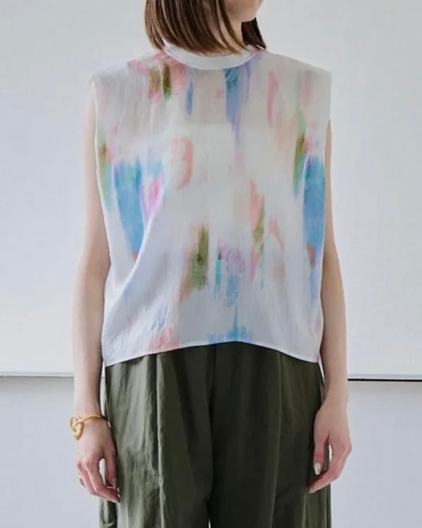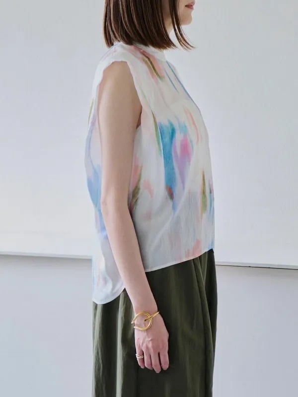【プリント柄 スリーブレストップス】