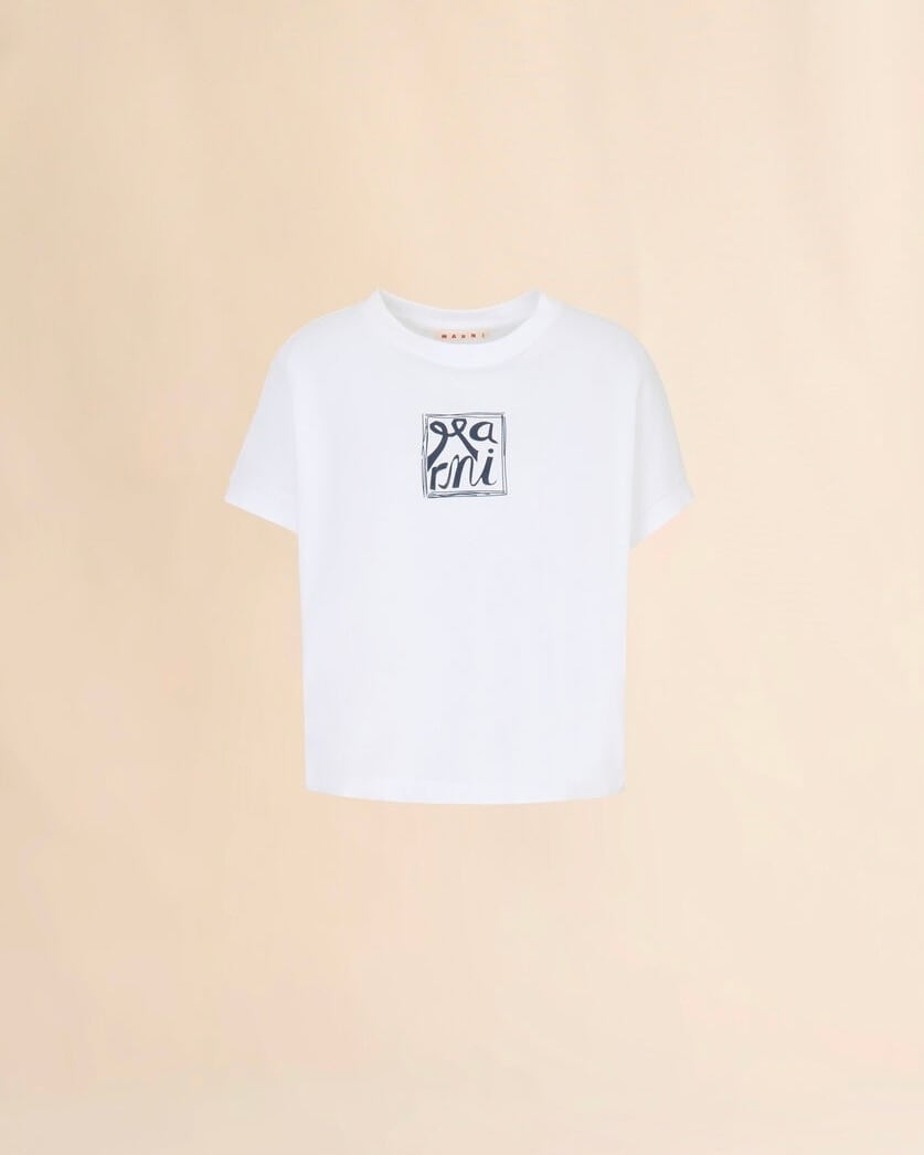 マルニ【Marni Frameロゴ ホワイト コットンコクーンTシャツ】