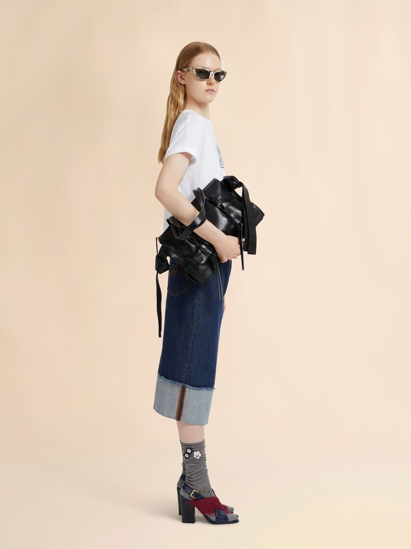 コットンジャージー製クルーネックTシャツ。 コクーンフィットのカフス付きスラウチーショートスリーブ。 胸にMarni Frameロゴプリント入り。