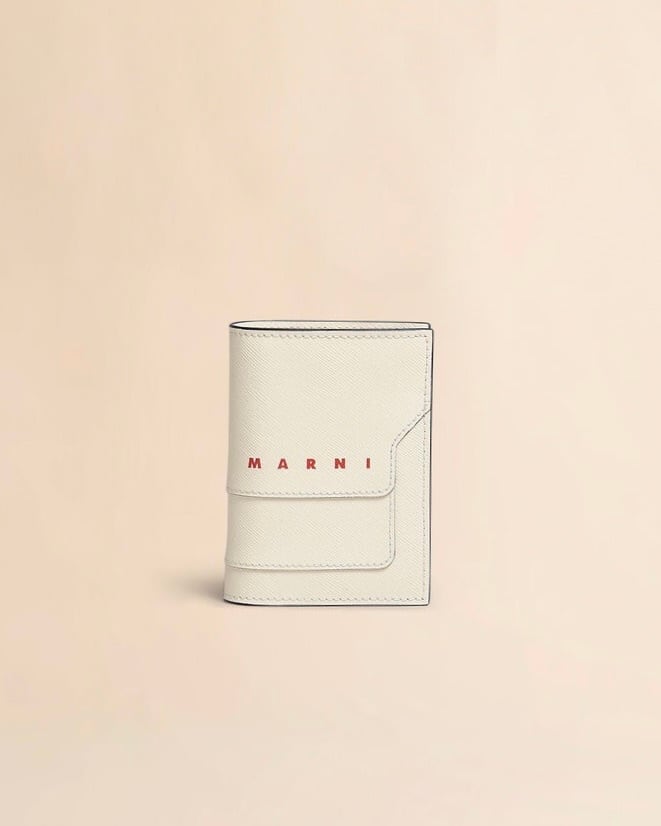 マルニ【ホワイト サフィアーノレザー 二つ折りウォレット】