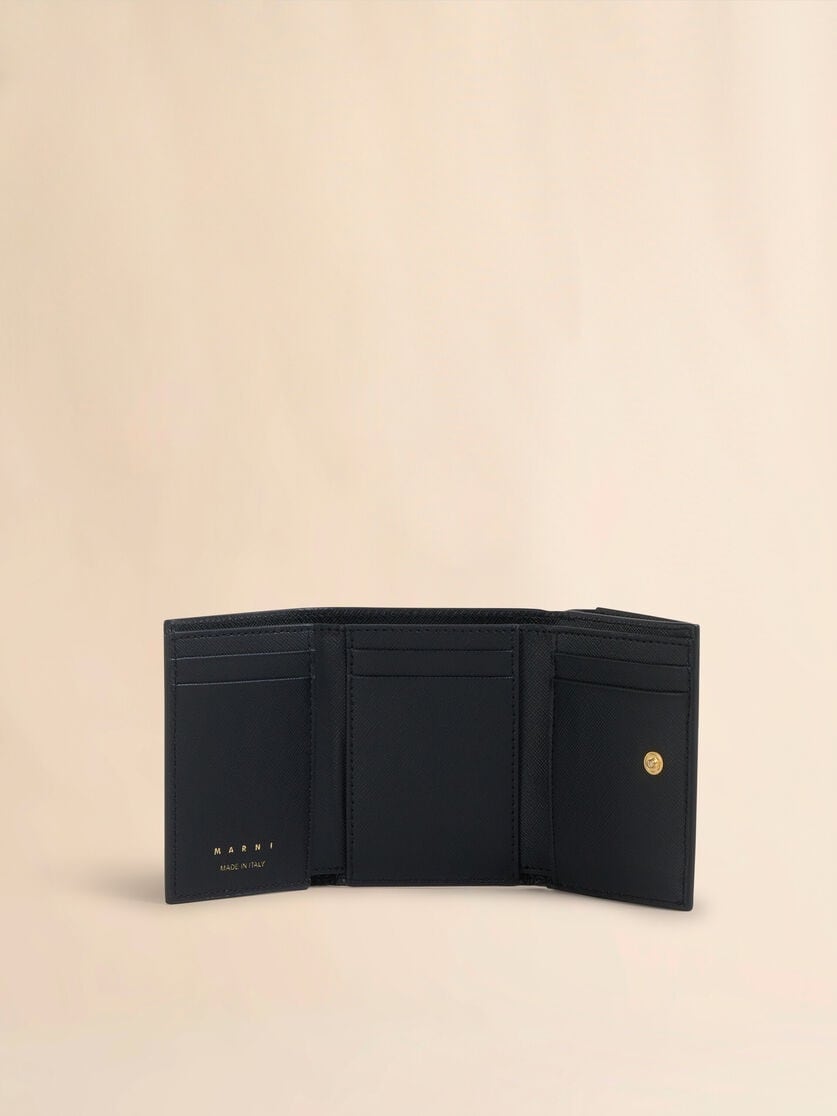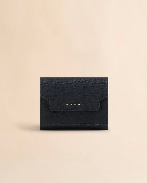 マルニ【ブラック サフィアーノレザー製三つ折りウォレット】