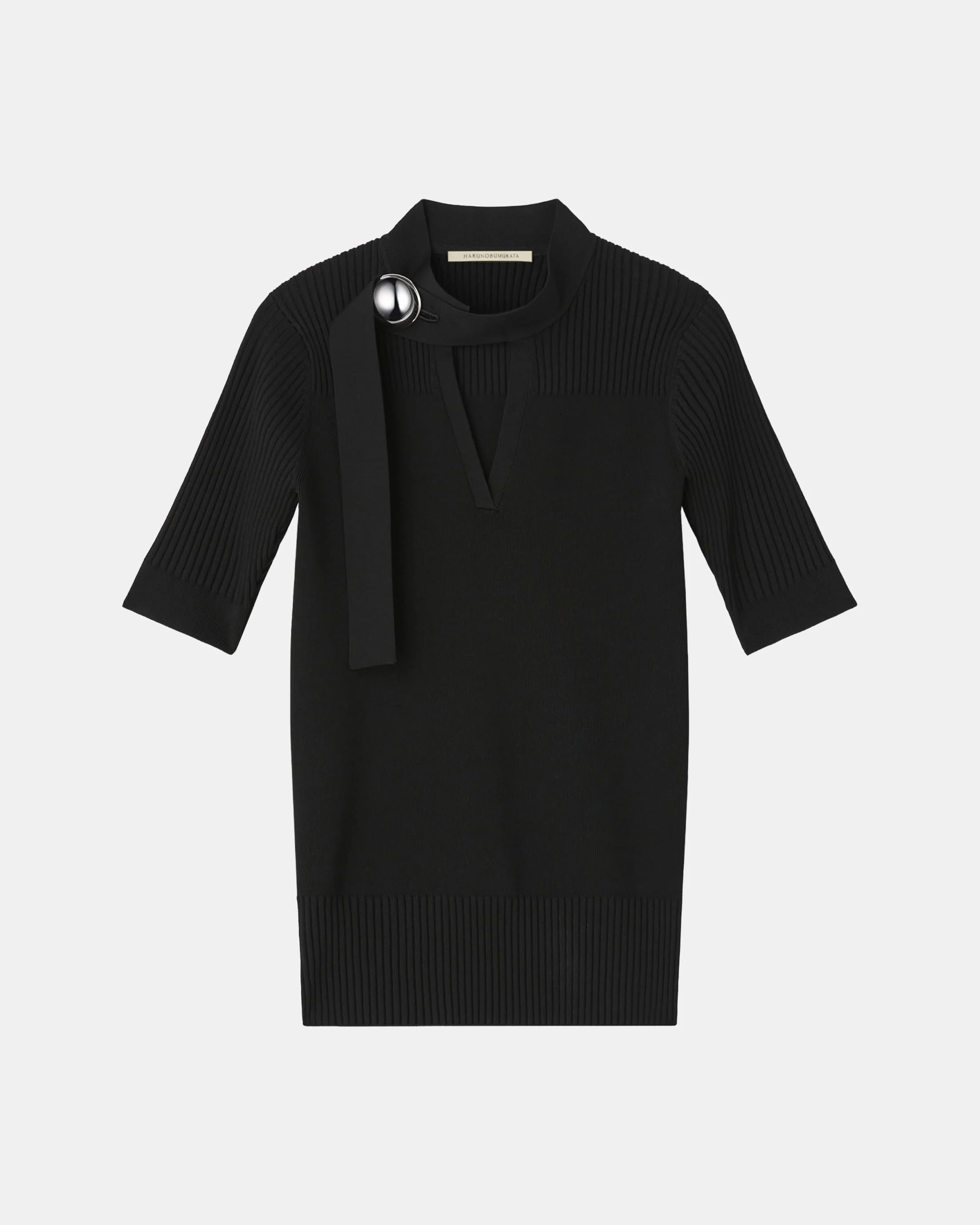 HARUNOBUMURATAの2026年春夏コレクションより、天竺とリブのコンビネーションで仕立てたニットトップ。