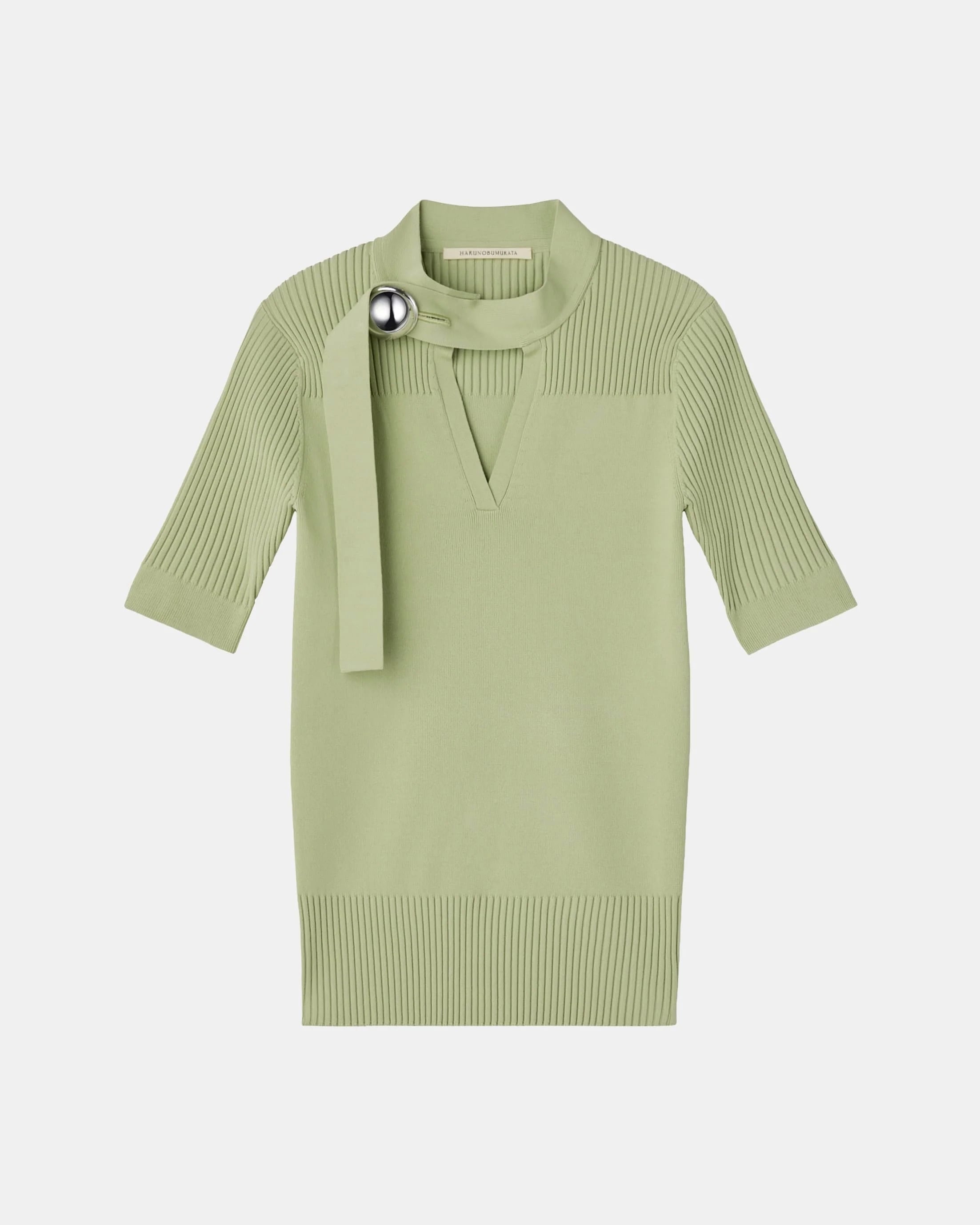 HARUNOBUMURATAの2026年春夏コレクションより、天竺とリブのコンビネーションで仕立てたニットトップ。