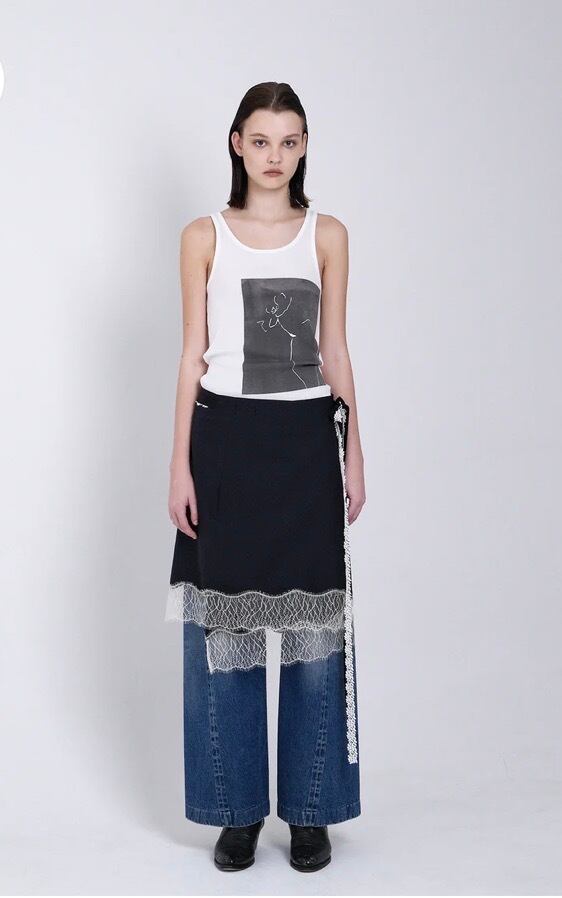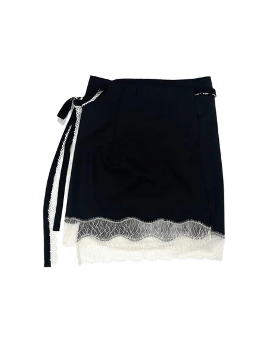 様々なスタイリングが楽しめるWRAP SKIRTは、裾とリボンに施されたレースのデザインが上品な印象です。