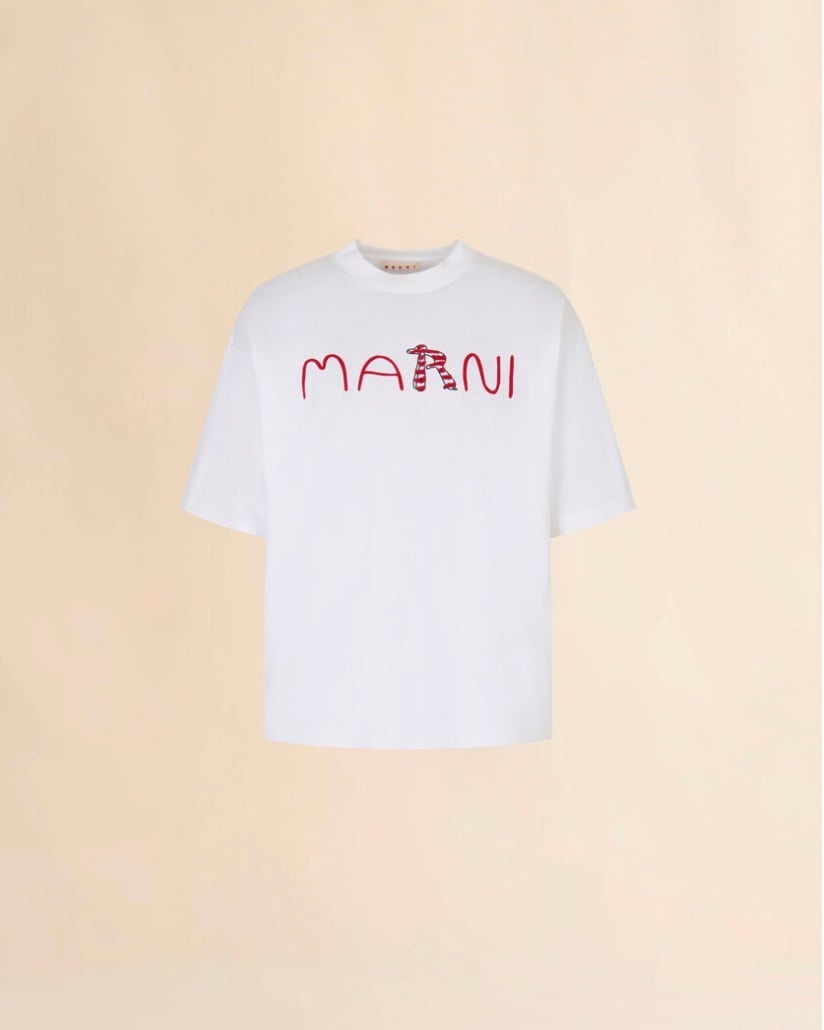 【 MARNI 】フロッキーMarni Animal Alphabetロゴ ホワイト コットンTシャツ