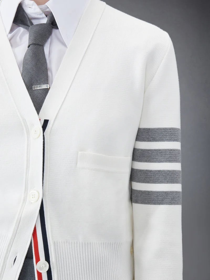 【コットン4-BARミラノクラシックVネックカーディガン】