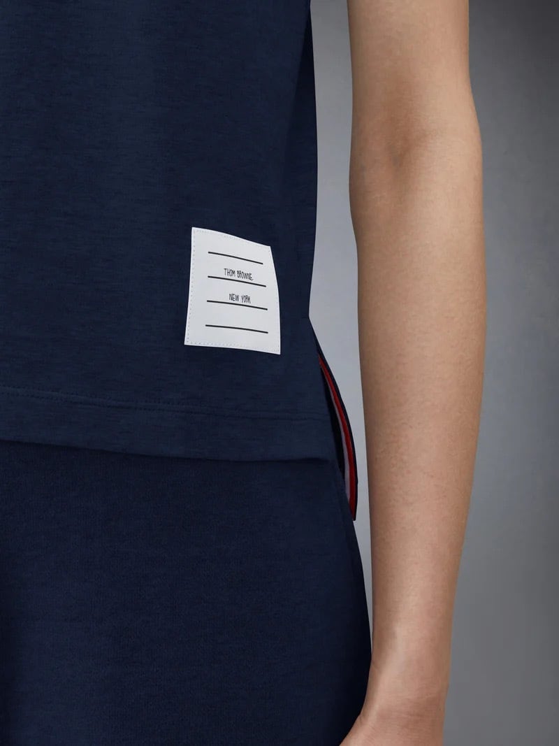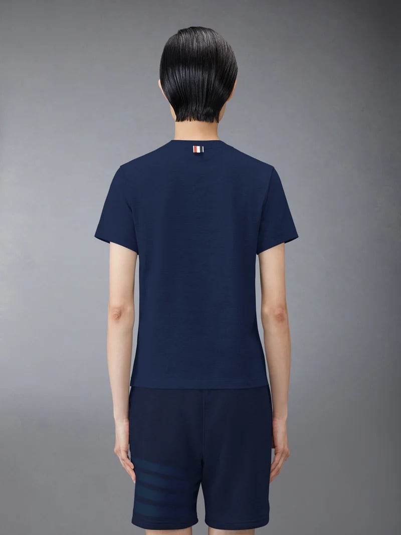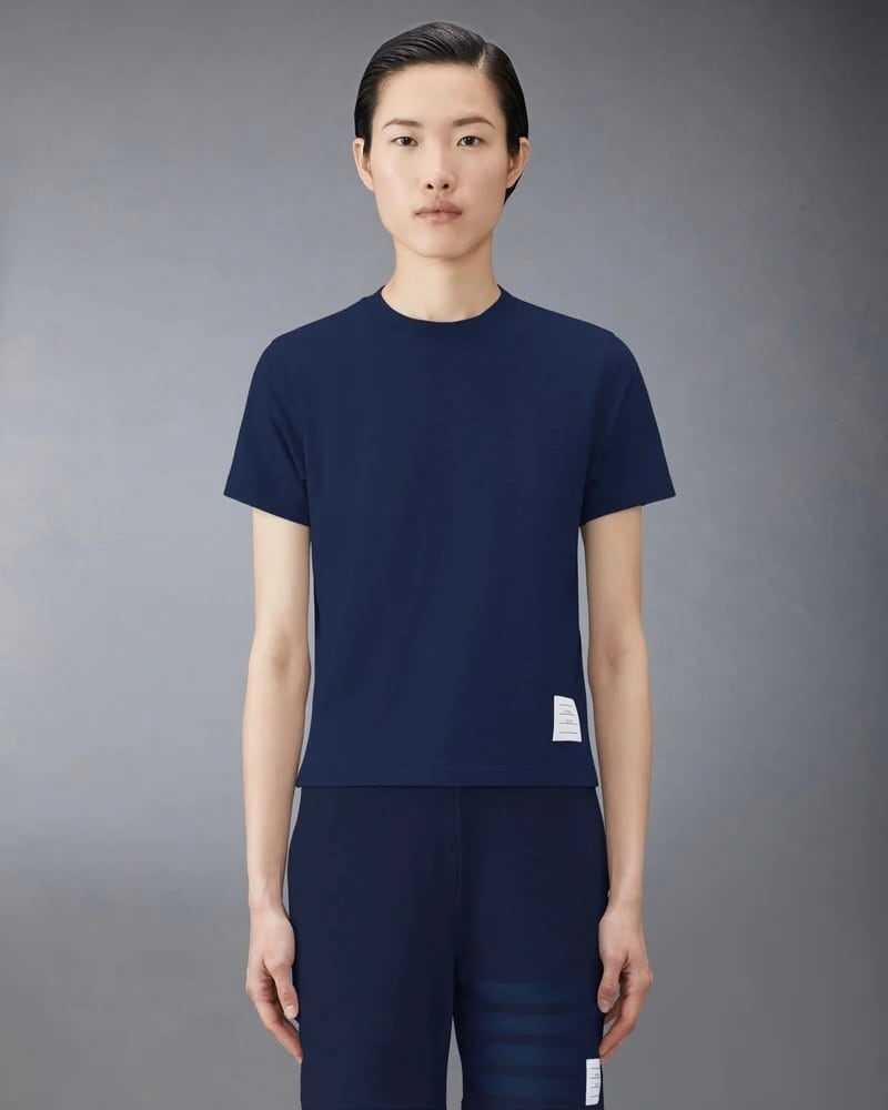 時代を超えて愛されるシルエットのジャージー素材のリラックスTシャツ。通気性の良いサイドスリット入りで、Thom Browneのシグネチャーであるブランドアイコンが随所にあしらわれています。