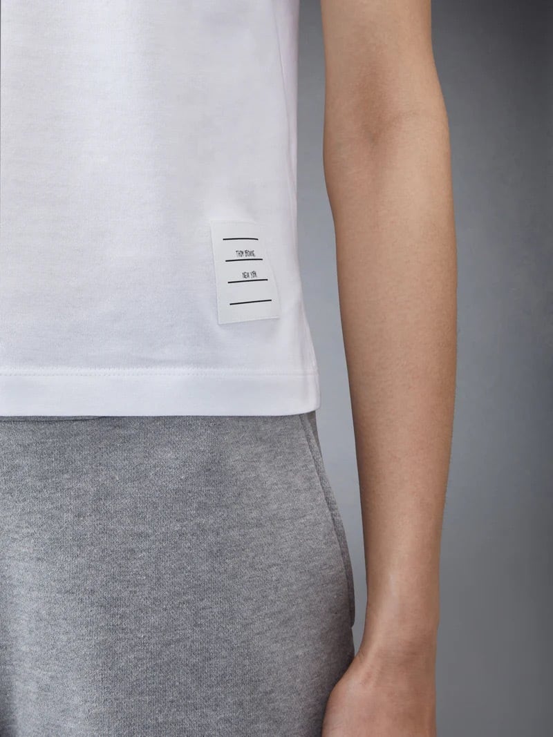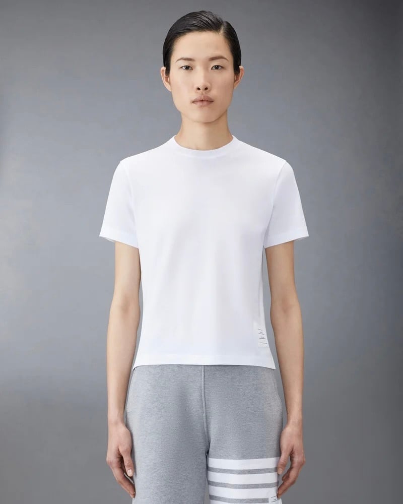 時代を超えて愛されるシルエットのジャージー素材のリラックスTシャツ。通気性の良いサイドスリット入りで、Thom Browneのシグネチャーであるブランドアイコンが随所にあしらわれています。