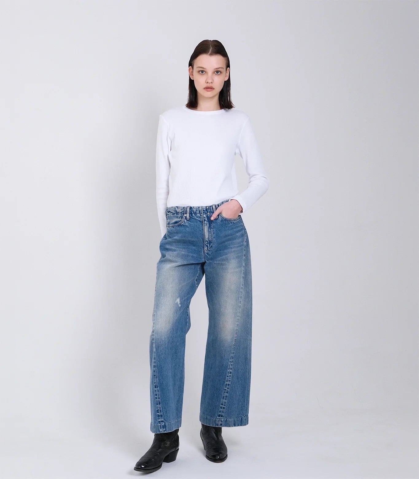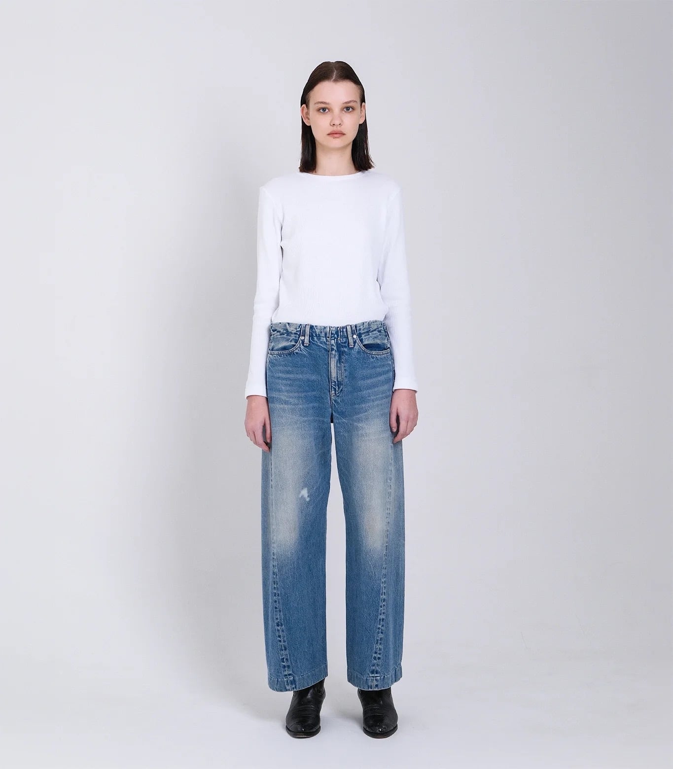 ローウェストでややワイドなシルエット。