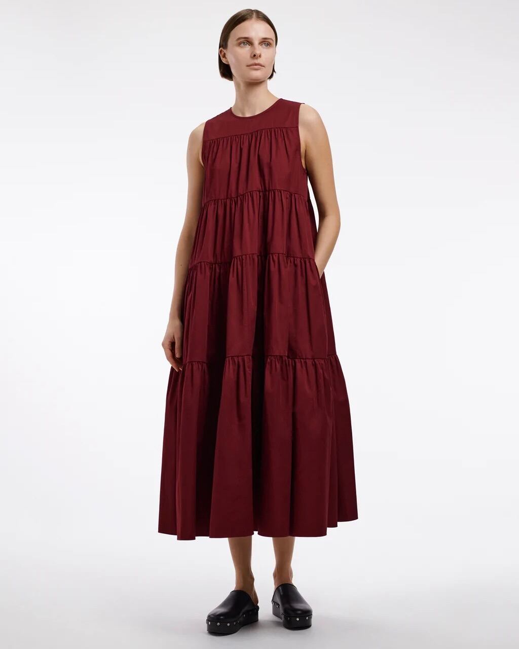【Sleeveless Tiered Dress in Cotton Poplin】