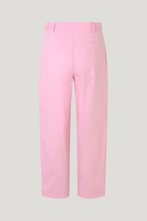 フロントにプリーツを折りたたんだクロップド、ミッドライズ、ストレートレッグパンツ。