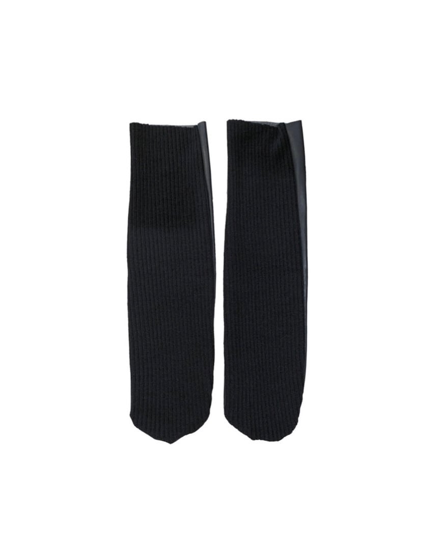 片面にブラックのリブ生地、片面に合皮を使用したソックス。