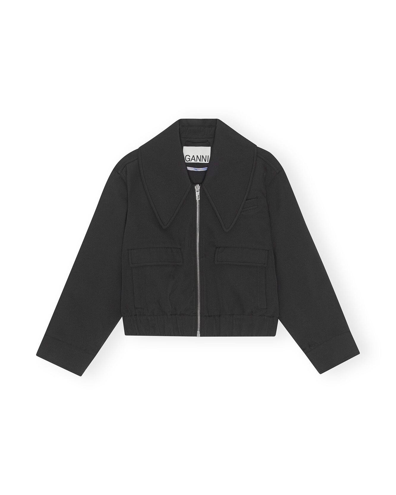 このヘビー ツイル ワイド カラー ジャケットは、認定されたリサイクル ポリエステルを使用しています。ジャケットはレギュラー フィットのデザインで、幅広の襟、ポケット、装飾ポケット、厚手のジッパー開閉部、伸縮性のあるヘムラインが特徴です。