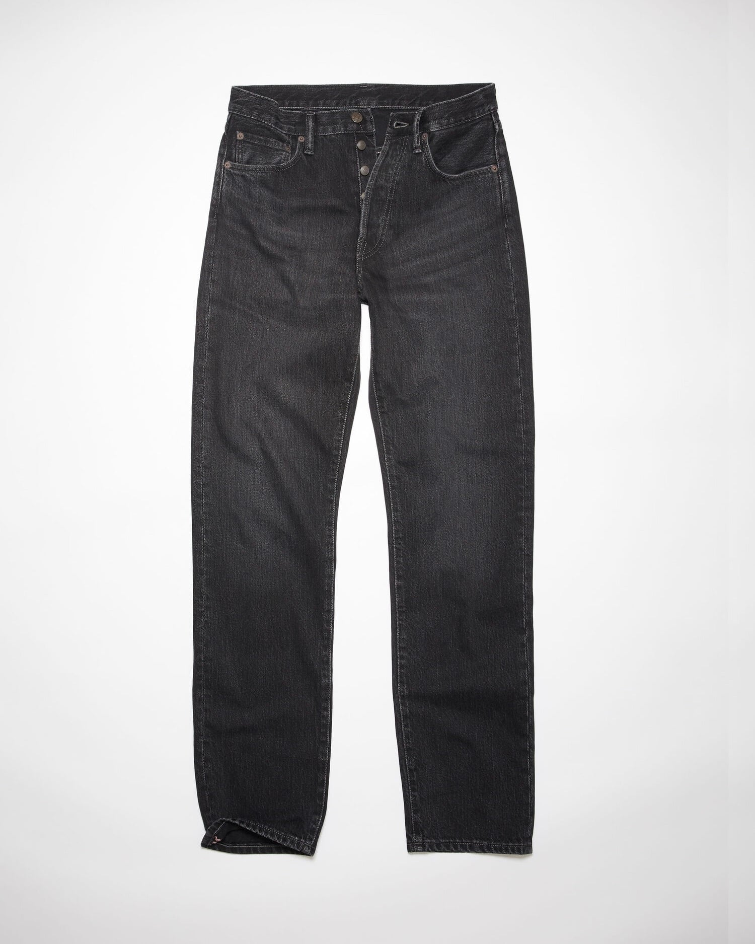 Acne Studiosのレギュラーフィットジーンズ。ブラックの色合いで、ミッドウエスト、レギュラー丈のストレートレッグスタイル。ファイブポケットデザイン。1996ジーンズには、コットンのリジッドデニムを使用。
