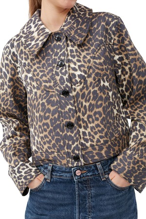 このレオパード プリント キャンバス ショート ジャケットは、ヘンプ混紡で作られています。ジャケットはレギュラー フィットのデザインで、襟、ボタン留め、ポケット、ヒョウ柄、さりげない GANNI ロゴが特徴です。