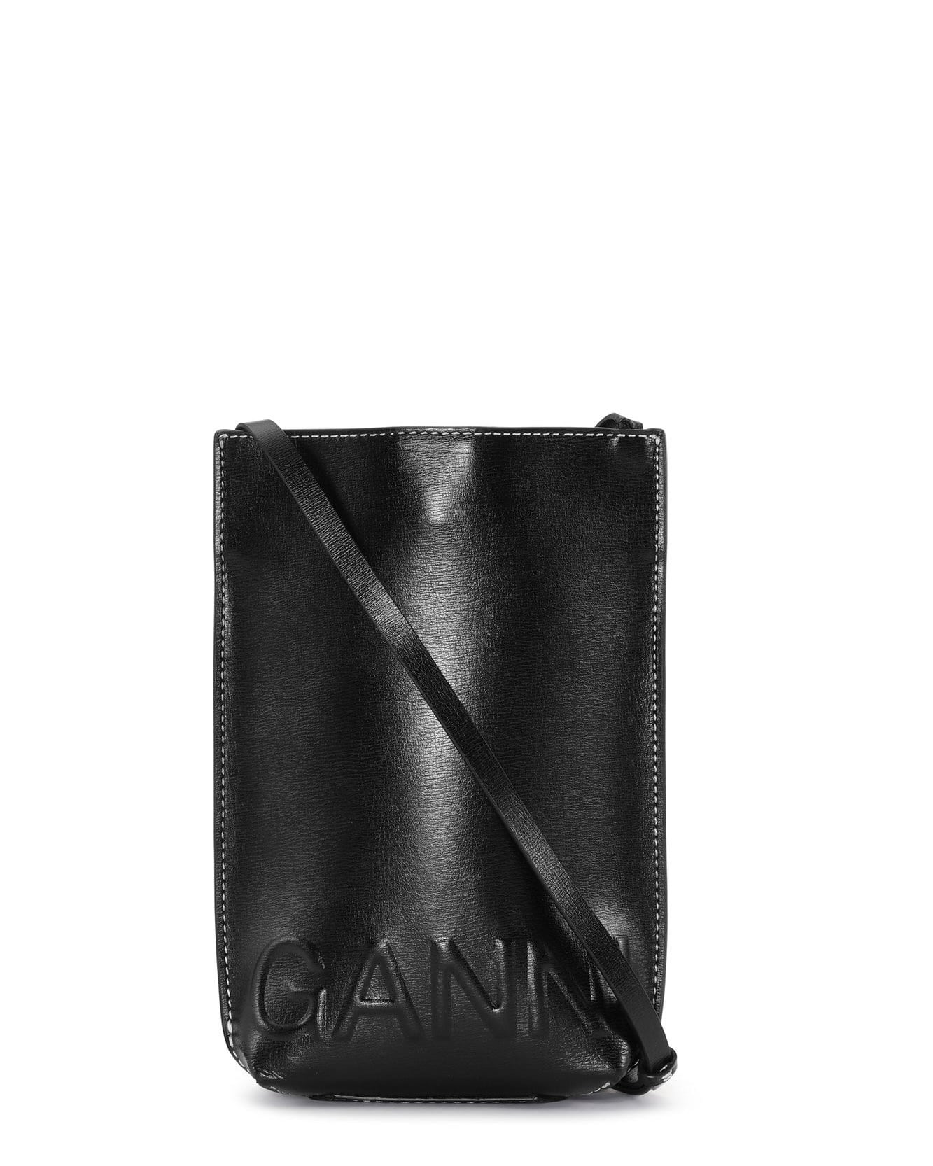 このスモール クロスボディ バナー バッグは、認定されたリサイクル レザーを使用しています。調節可能なショルダーストラップとデボス加工の GANNI ロゴが特徴です。