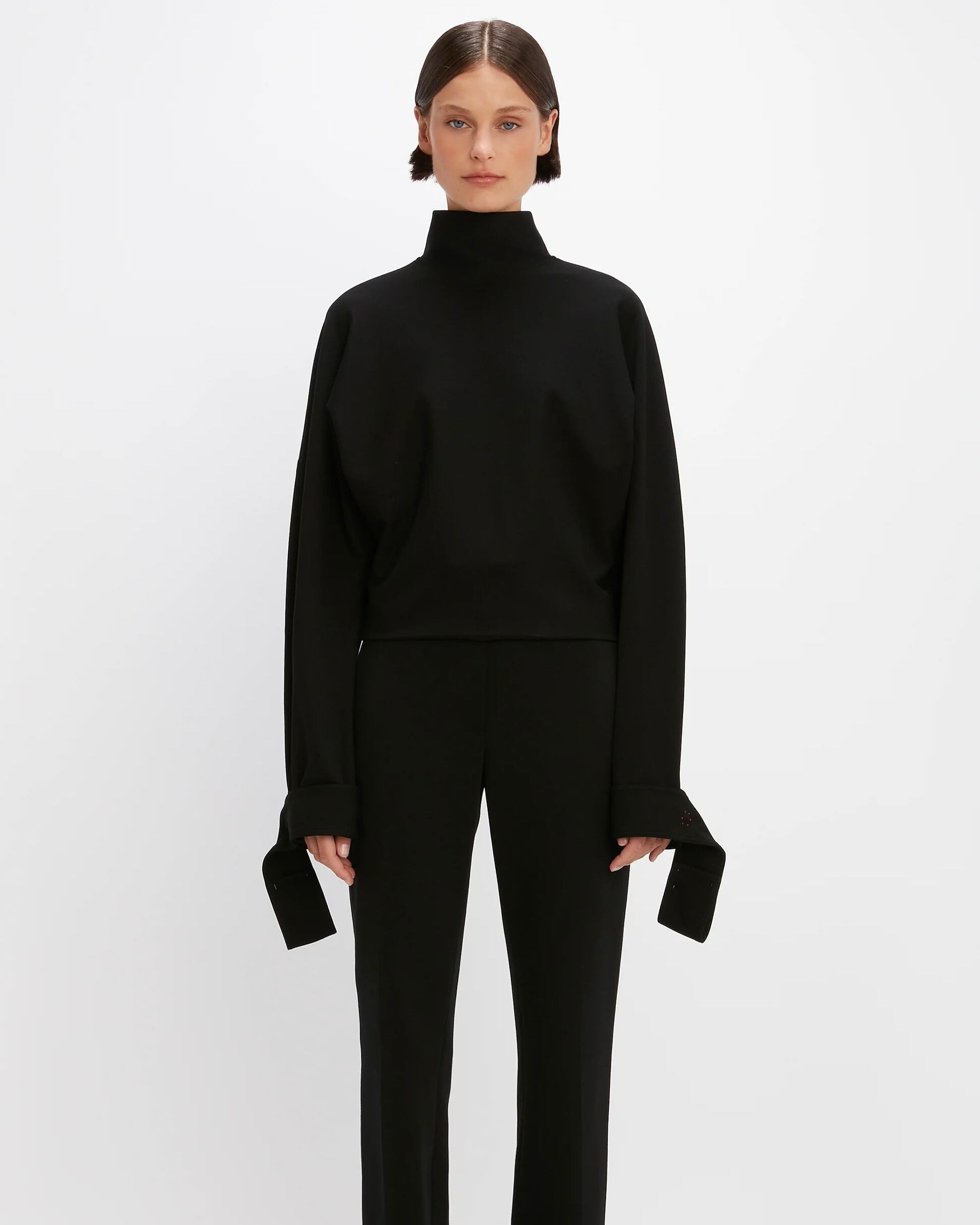 【Tie Sleeve Ponti Top In Black 】