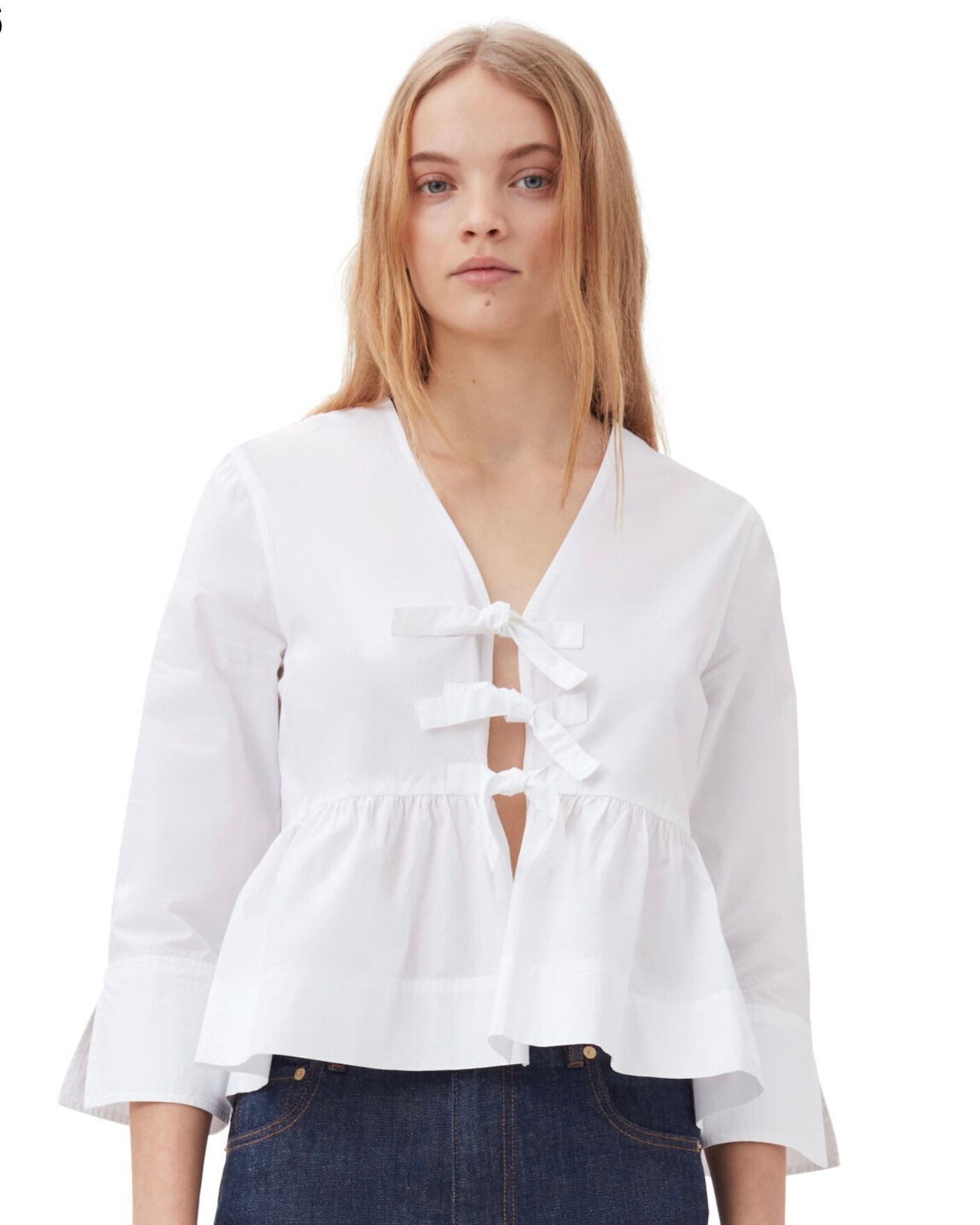 【COTTON POPLIN TIE STRING PEPLUM BLOUSE】