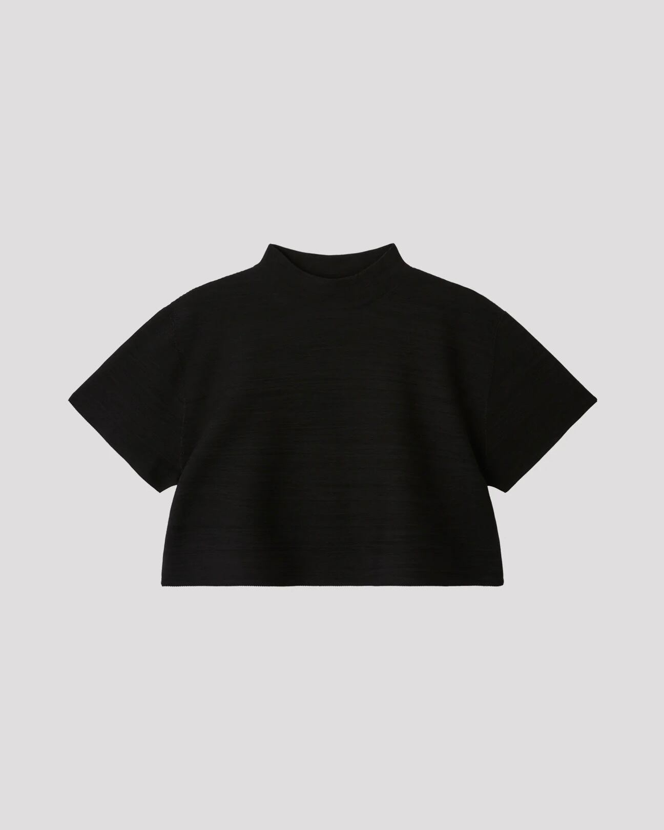 【GARTER MOCKNECK SHORT SLEEVE CROPPED TEE SHIRT】