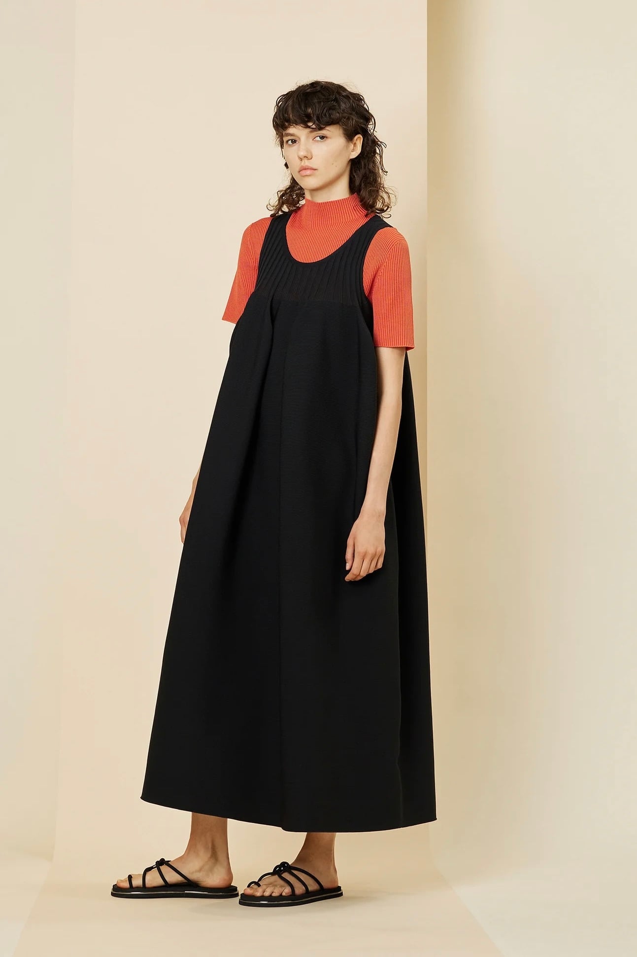 CFCLを象徴するPOTTERYシリーズのバストフレアドレスです。着心地よく、シンプルながら、ドラマティックなデザインです。コンピュータプログラミングによって作られたボリューム感のある立体的なフォルムが特徴です。ストレッチ性に優れ、縫代がなく、快適にご着用頂けます。夏は素肌に、冬はタートルリブニットの上に、一年中着用可能です。