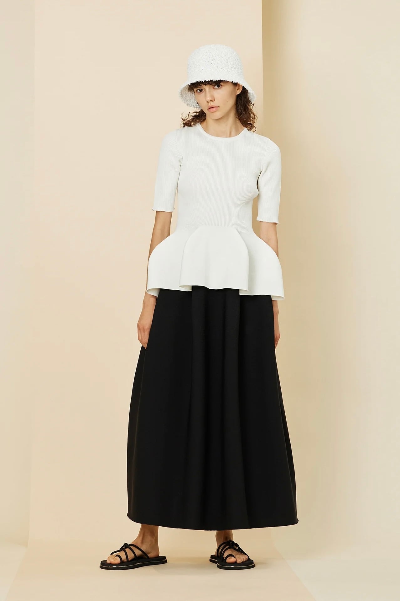 CFCLを象徴するPOTTERYシリーズのペプラムトップスです。コンピュータプログラミングによって作られたボリューム感のある立体的なフォルムが特徴です。着心地よく、シンプルで、あらゆるオケージョンに対応できるデザインです。ストレッチ性に優れ、縫代がなく、快適にご着用頂けます。