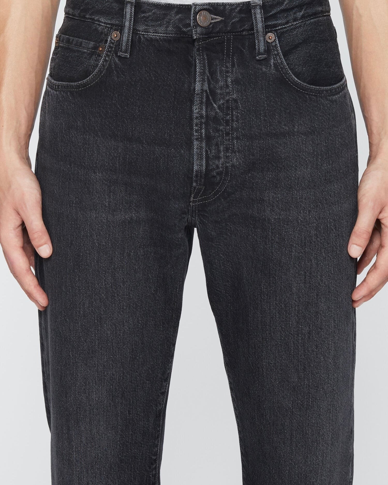 1996ジーンズ。ミッドウエスト、レギュラー丈、ストレートレッグのレギュラーフィットスタイル。ブラックウォッシュ加工を施したノンストレッチデニムを使用