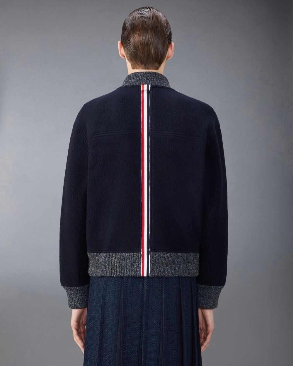 寒い季節の洗練の最高峰、ウールフリースボンバージャケット。トム ブラウンのシグネチャーアイコンがあしらわれた上質なアウターウェアをお楽しみください。