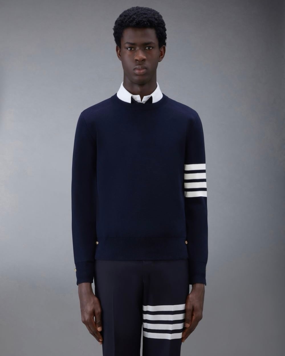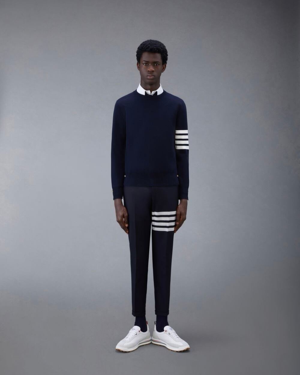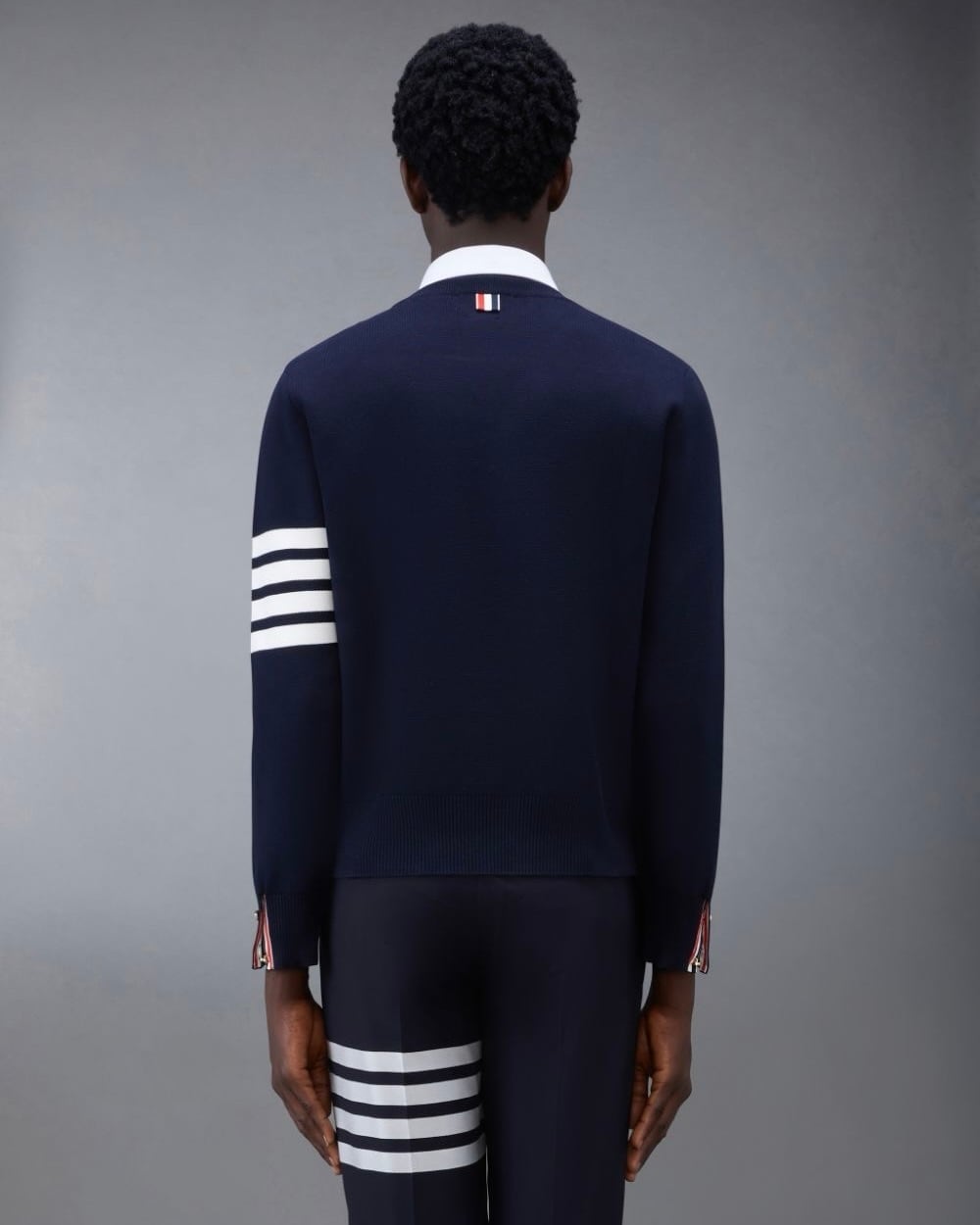 【ネイビー ミラノリブ コットン 4BAR クルーネックプルオーバー】