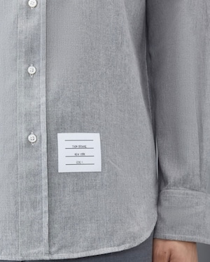 【ミディアムグレー シャンブレー プリント 4BAR ネームタグ ストレートフィットシャツ】