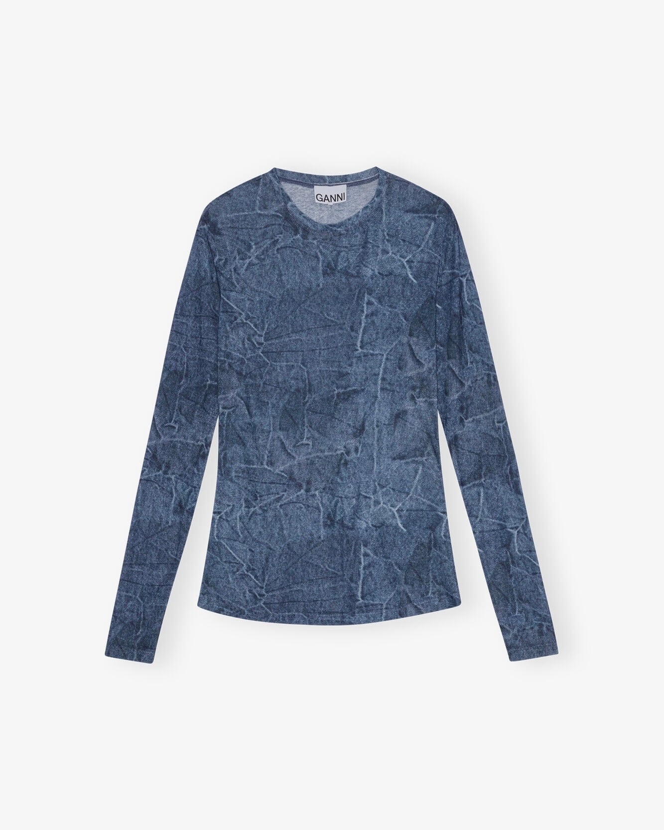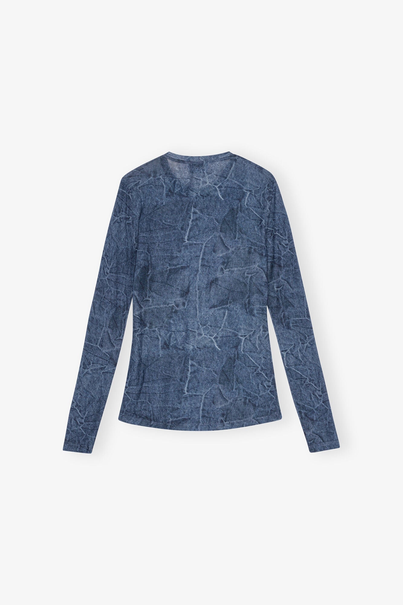 【BLUE PRINTED MESH LONG SLEEVE BLOUSE】